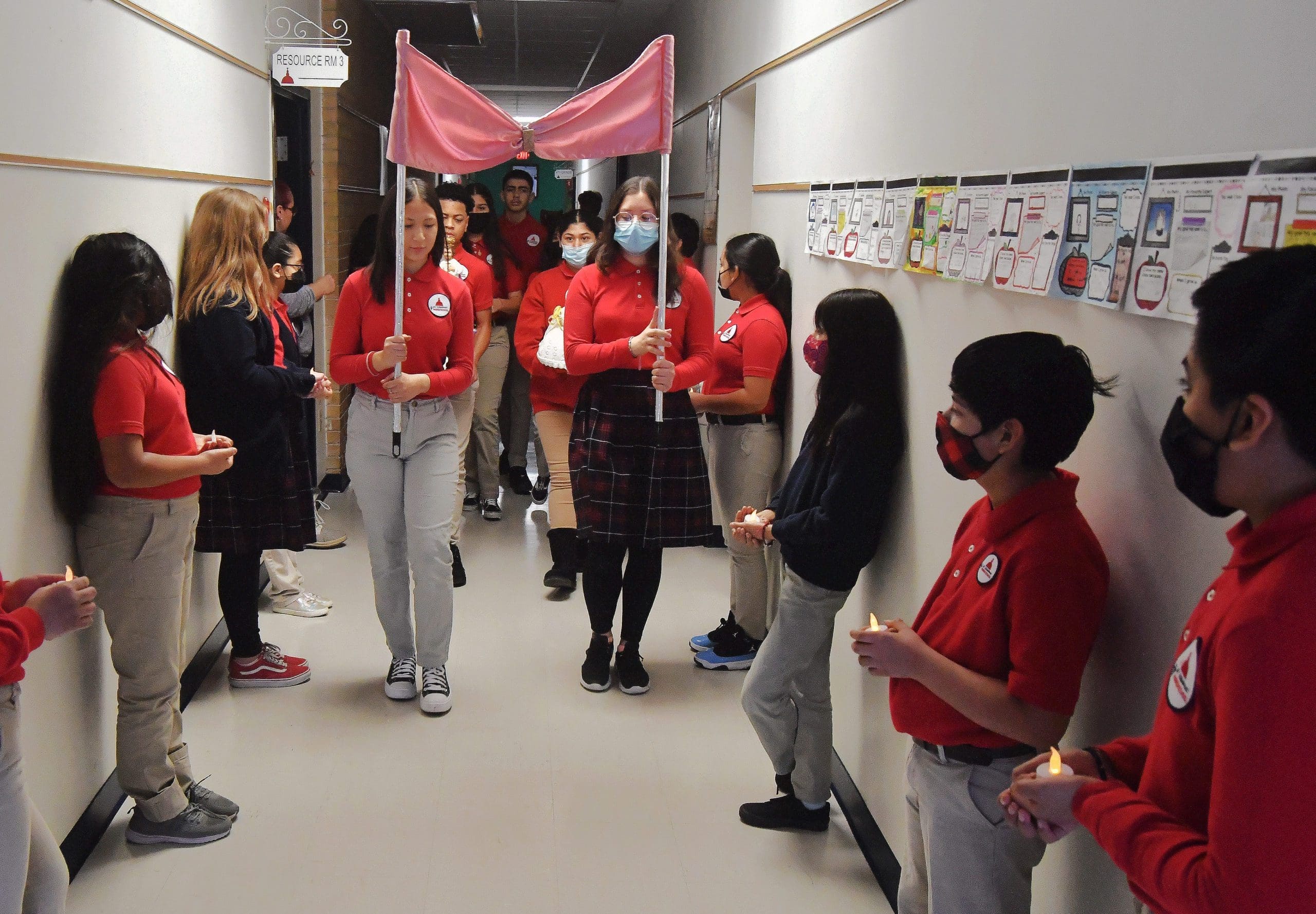 On Wednesday, Feb. 2, St. Josaphat School held a hallway processional to celebrate the Feast of the Presentation of the Lord and the Feast Day of Our Lady of Good Success. (Photos by David Bernacchi)