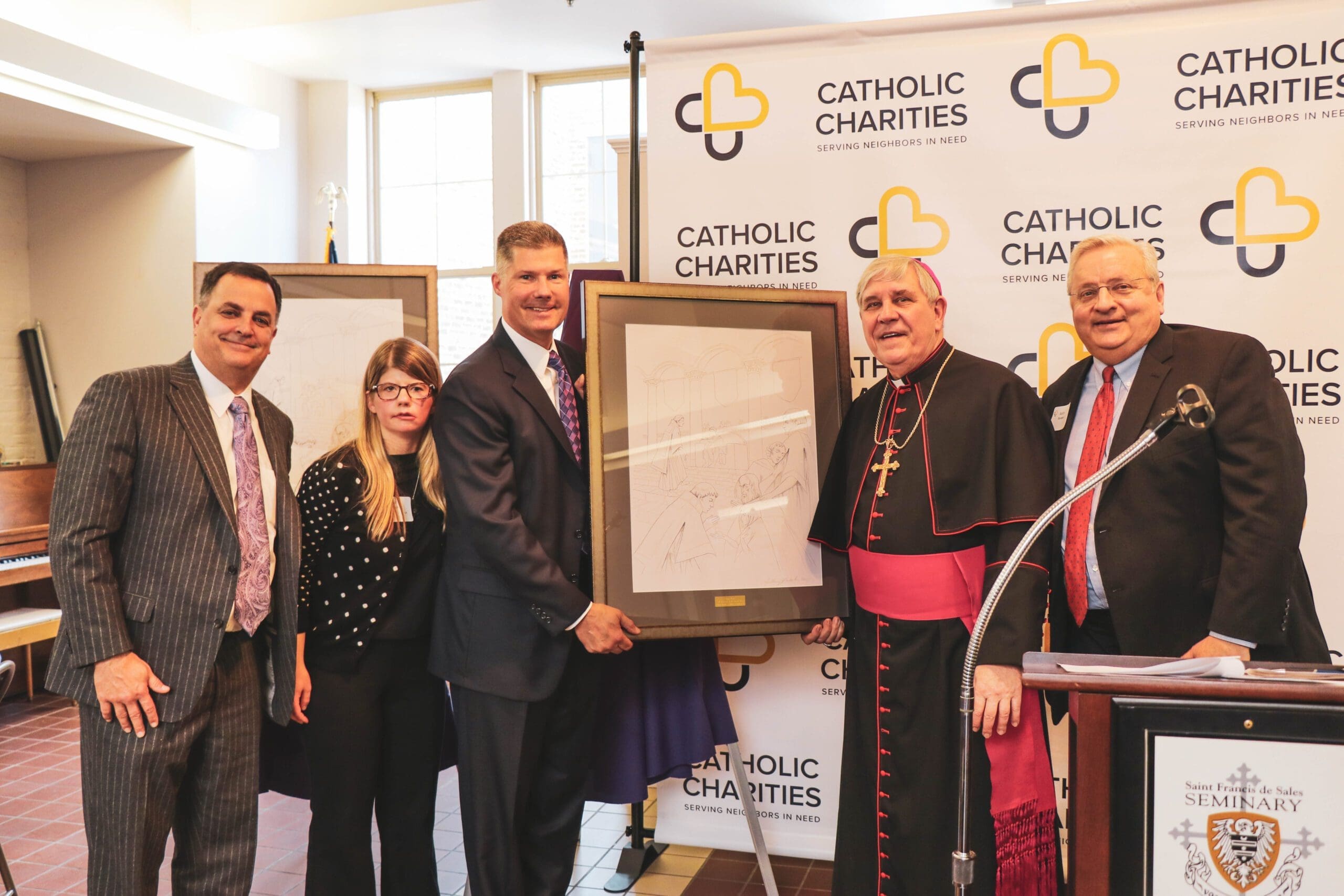 Town Bank President Jay Mack (third from left), whose company was honored at the 2019 Lenten Luncheon series as one of the “Treasures of the Church” award recipients. (File photo)