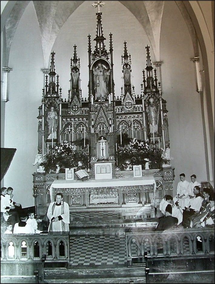 The first Mass at the new St. Andrew Church was offered in the basement on Thanksgiving Day 1895. A year later, a matching rectory was built at a cost of $5,000, using the same Waukesha stone and gothic architecture as the church. Fr. Buckley, who served as pastor for 21 years, arrived as the upper church was completed and on July 12, 1899, the $20,000 church was declared debt free. The sanctuary’s St. Andrew window was donated by Father Smith and gas lights lit the church, to be replaced later by electrical fixtures.