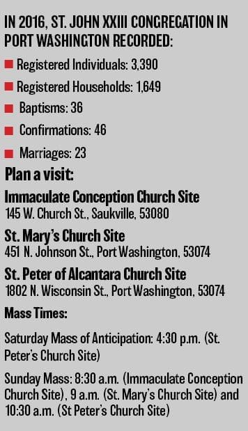 On the surface in its present configuration, St. John XXIII Parish might seem relatively new. But look a little closer and you’ll discover a thriving church community rich in both history and tradition as it serves its congregation in both Port Washington and Saukville. On July 1, 2016, three parish communities merged to become one. Immaculate Conception in Saukville joined St. Mary’s Church and St. Peter of Alcantara Parish, both in Port Washington, to become St. John XXIII Parish.