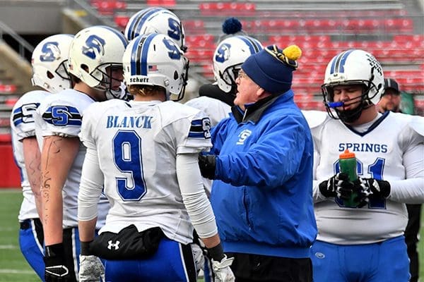 St. Mary’s Springs coach Bob Hyland, the winningest coach in state history, talks to his team during the WIAA [...]