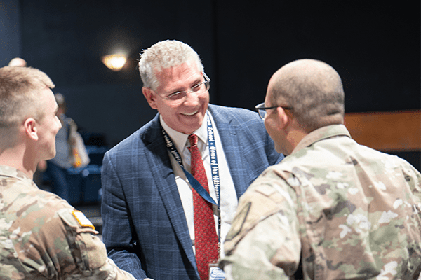 Brian Shimon, a military veteran and the principal of Catholic Central High School in Burlington, greets members of the [...]