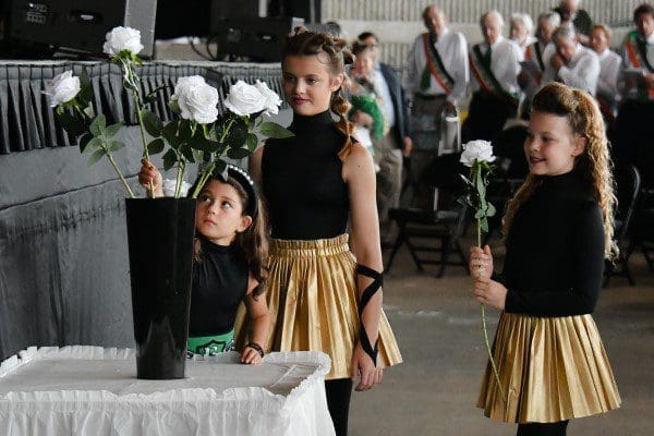 Roses are placed in a vase before the Irish Fest Liturgy for Peace and Justice on Sunday, Aug. 20. [...]