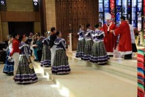 Members of The Ballet Folklorico of the University of Nayarit, Mexico, bring the gifts to the altar…