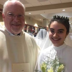 Fr. Paul Hartmann is pictured with Catholic Memorial class of 2016 graduate, Abby Dedinsky, who on Dec. 3 was received into the Schoenstatt Sisters of Mary and became Sr. Maria Gracia. (Submitted photo courtesy Fr. Hartmann)