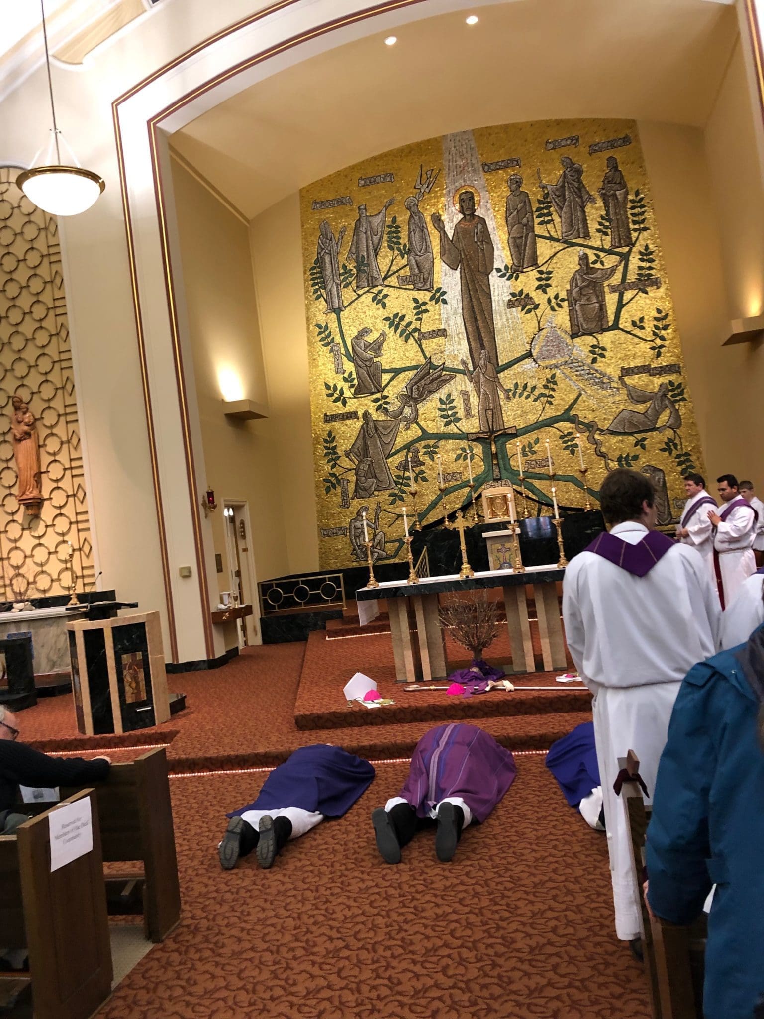 Archbishop Listecki described this gesture as a way of “approaching the altar of sacrifice as sinful creatures before God.”