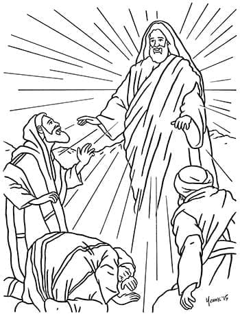 As he prays, Jesus is transfigured (changed) right before their eyes. His face shines as bright and radiant as the sun, and his clothes become whiter and more dazzling than new-fallen snow.