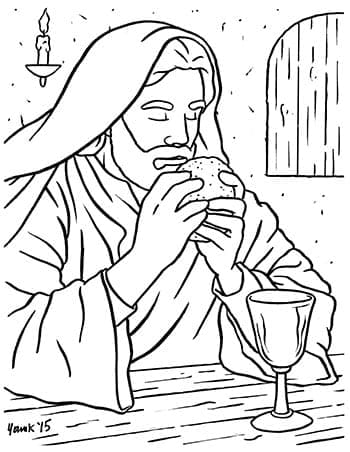 At this Last Supper, Jesus instituted the Eucharist. He changed the bread and wine into his own body and blood and gave it to his disciples.