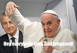 Pope Francis answers a question from journalists aboard his flight from Asuncion, Paraguay, to Rome July 12. (CNS photo/Paul Haring)