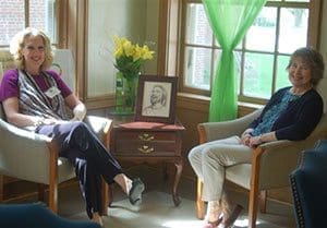 Deb Schiel and Terri Nichols relax in the Kiwi Café, at a recent Firstfruits gathering at St. Anthony Parish, Pewaukee. (Submitted photo courtesy Firstfruits)