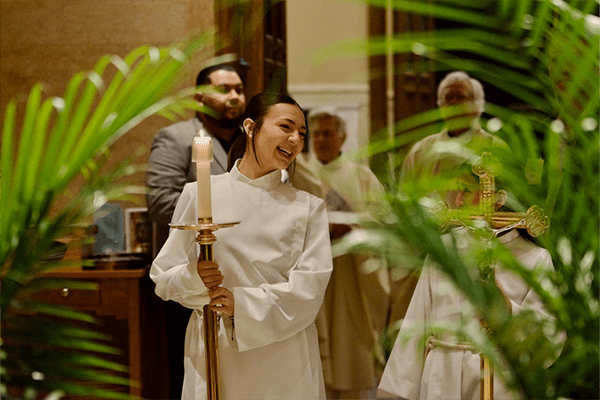 Altar servers await the opening procession for the Holy Thursday Mass of the Lord’s Supper at the Cathedral of St. John the Evangelist, Milwaukee, on April 2. (Photo by seancsmithphotos.com)