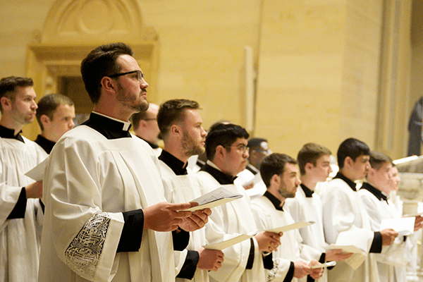 Seminarians from Saint Francis de Sales Seminary, St. Francis, took part in the Chrism Mass at the Cathedral of St. John the Evangelist, Milwaukee on March 31, along with dozens of priests and deacons. (Photo by Chris Plamann)