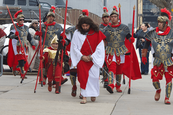 A two-mile Good Friday procession from Our Lady of Guadalupe, Milwaukee, to St. Hyacinth, Milwaukee, features a reenactment of the 14 Stations of the Cross. (Photo by seancsmithphotos.com)