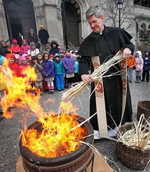 Speaking of Lent, look closely at the palm burning photo and you will see a cross formed by the flames. The image was shot Feb. 17 at St. Clement School, Chicago, by Karen Callaway of the Catholic New World.