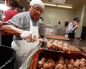 Members of the Pompeii Men’s Club and their wives gather last Oct. 30 to make meatballs for St. Joan Antida High School’s annual spaghetti dinner fundraiser.