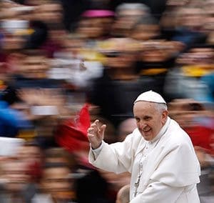 Pope Francis greets the crowd as he arrives to lead his general audience in St. Peter’s Square at the Vatican Nov. 20. (CNS photo/Paul Haring)