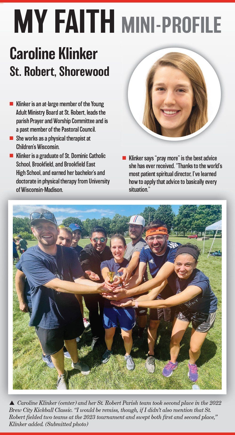 I’ve played the violin since I was 5 years old. When I was very little, my violin teacher taught me that the ability to make music is a gift from God, and that it is a gift that is meant to be shared. Today, I love to share music by playing at my parish, for Brew City Catholic events, with the Wisconsin Intergenerational Orchestra and at living room jam sessions with friends.