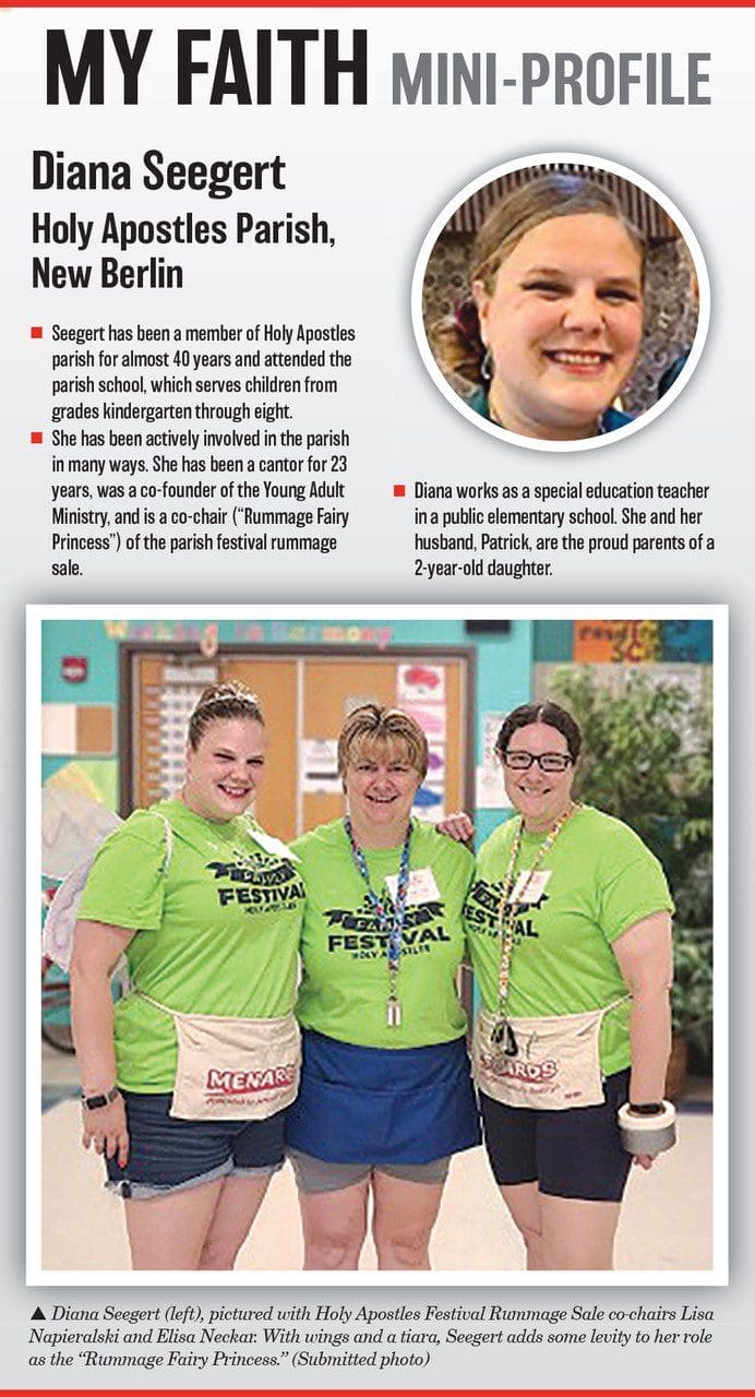When I was 7, my family was a part of the Vista Family ministry, which provided many opportunities to meet other parishioners while enriching our faith and having fun. This led to involvement in other ministries, which increased my attachment to the parish. From fifth through 10th grade, I was a Mass server. Then, in 11th grade, I joined the choir as part of my Confirmation service ministry. The following summer, I transitioned to a cantor (soloist) and have been doing that for 23 years. As an adult, I was recruited to help run the church festival rummage in 2013. I also helped co-found the Young Adult Ministry and ran it from 2016-20. I have served in the Hospitality Ministry and participated in many service projects that the parish has hosted over the years, including the Lenten Food Pack, Christmas Food Boxes and Fellowship Breakfasts.