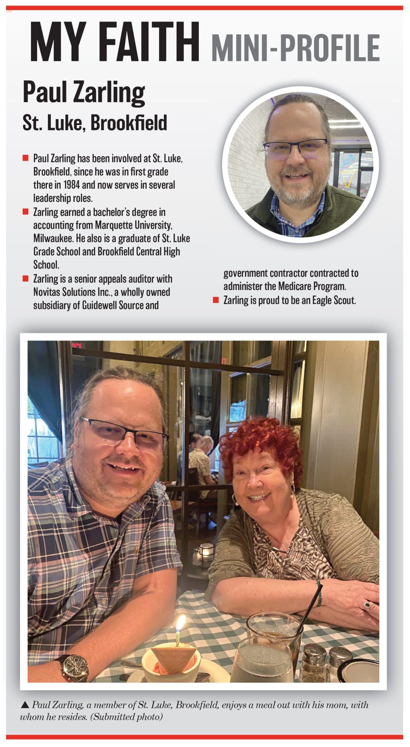 I started at St. Luke in 1984, when I went to first grade there, and they have not been able to get rid of me since. My mom got me involved with helping her as she taught K-5 Christian formation classes. I would hand out papers for her. By fifth grade, I was cleaning tables at the fish fries, and it took off from there. Today, I am the Pastoral Council chair. I am also the fall festival chair and a member of the auction committee. I also organize the three Lenten fish fries and our December Advent breakfast. I have coordinated bingo in the past, but we have not brought that back since COVID.