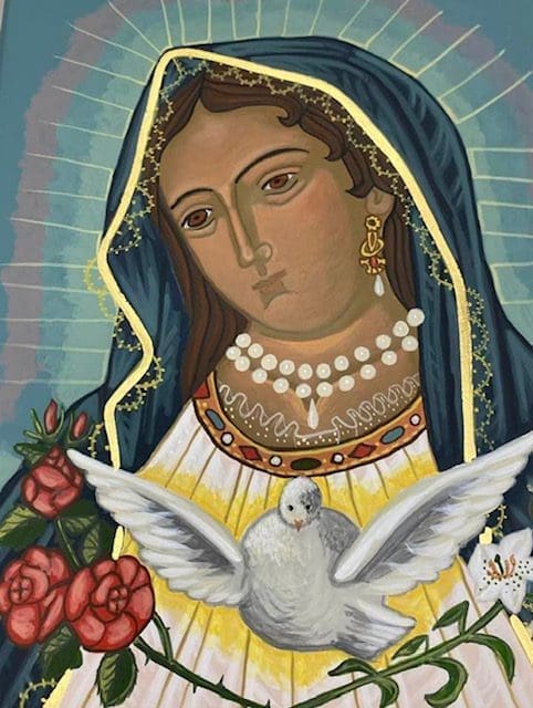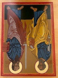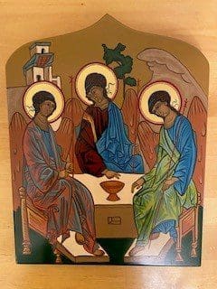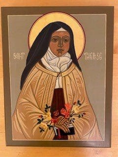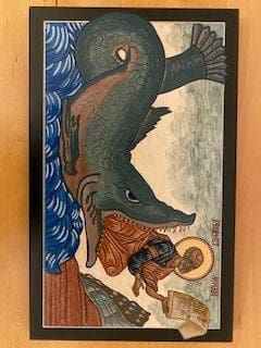 Icons originated in the Eastern Churches. They are usually painted on wooden boards coated with gesso. They are images of God, the saints or angels. Icons are windows into heaven. Each detail in an icon represents something holy and teaches us about God, the saint or the angel. Icons are painted; however, one says that an icon is written. Icons are the Gospel written with brush strokes. I have written several icons over the years: St. Luke, the Nativity, St. Francis and Wolf, Christ the Teacher, St. Therese, Jonah, Konev Mother of God, Saints Peter and Paul, Holy Trinity, St. Kateri, Mother of Good Counsel and the Soul of Mary.