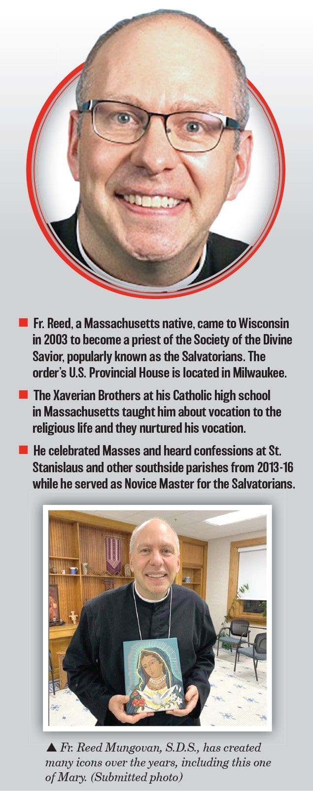 Fr. Reed Mungovan, S.D.S., became pastor of Mother of Good Counsel Parish in Milwaukee in 2019. He already enjoyed painting when he learned more about icons nearly 20 years ago and later began creating them. Icons are sacred art meant to visually express the theological teaching of the Church.