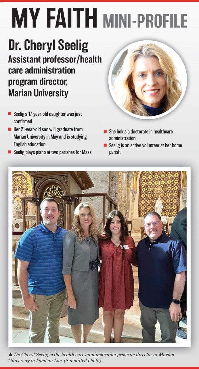 I love the rosary. So Marian Mary, our mother. When I took this particular position back in May, I just had this overwhelming sense to really pray the rosary daily for the nursing program. I’ve always had a strong devotion to the rosary and to the Divine Mercy Chaplet. It’s what got me through my doctorate.