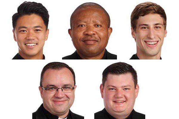 Five men will be ordained to the transitional diaconate on Saturday, April 23. They are (top, from left) Ryan Ackmann, Kenneth Anyanwu, Michael Courchaine, (bottom, from left) Joseph Heit and Kevin Tanel.