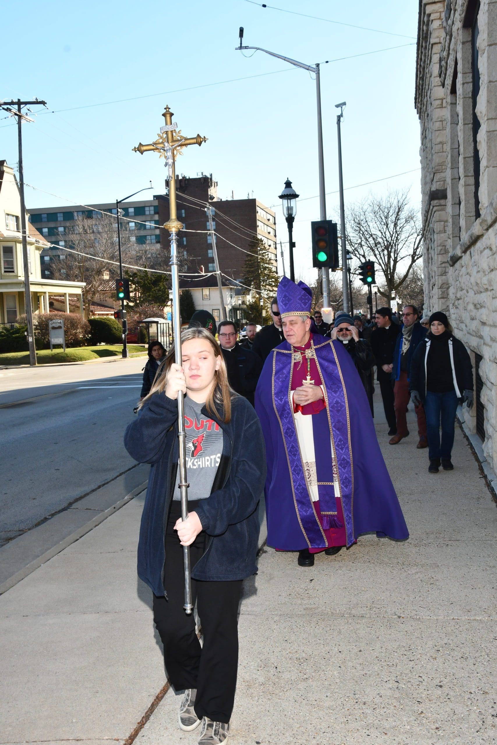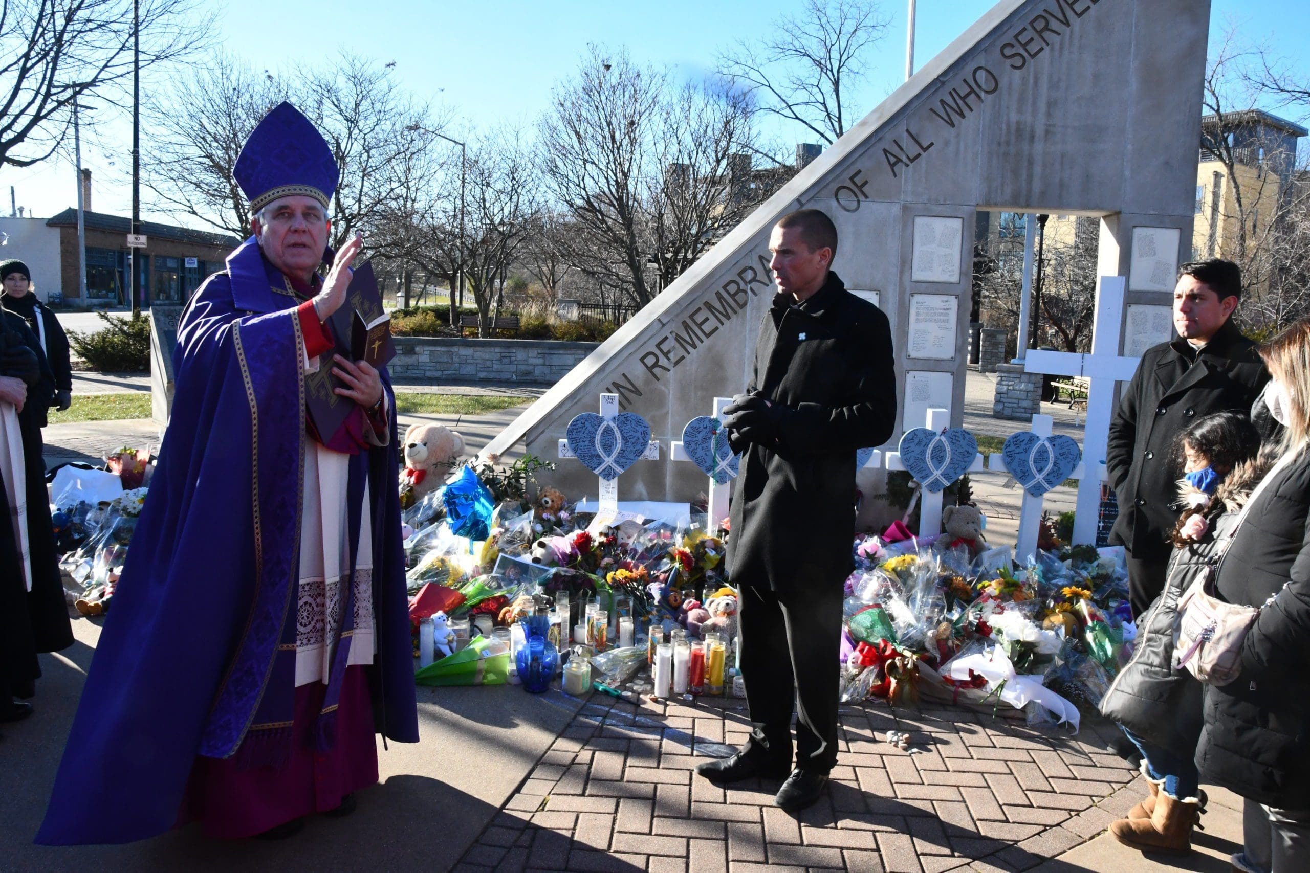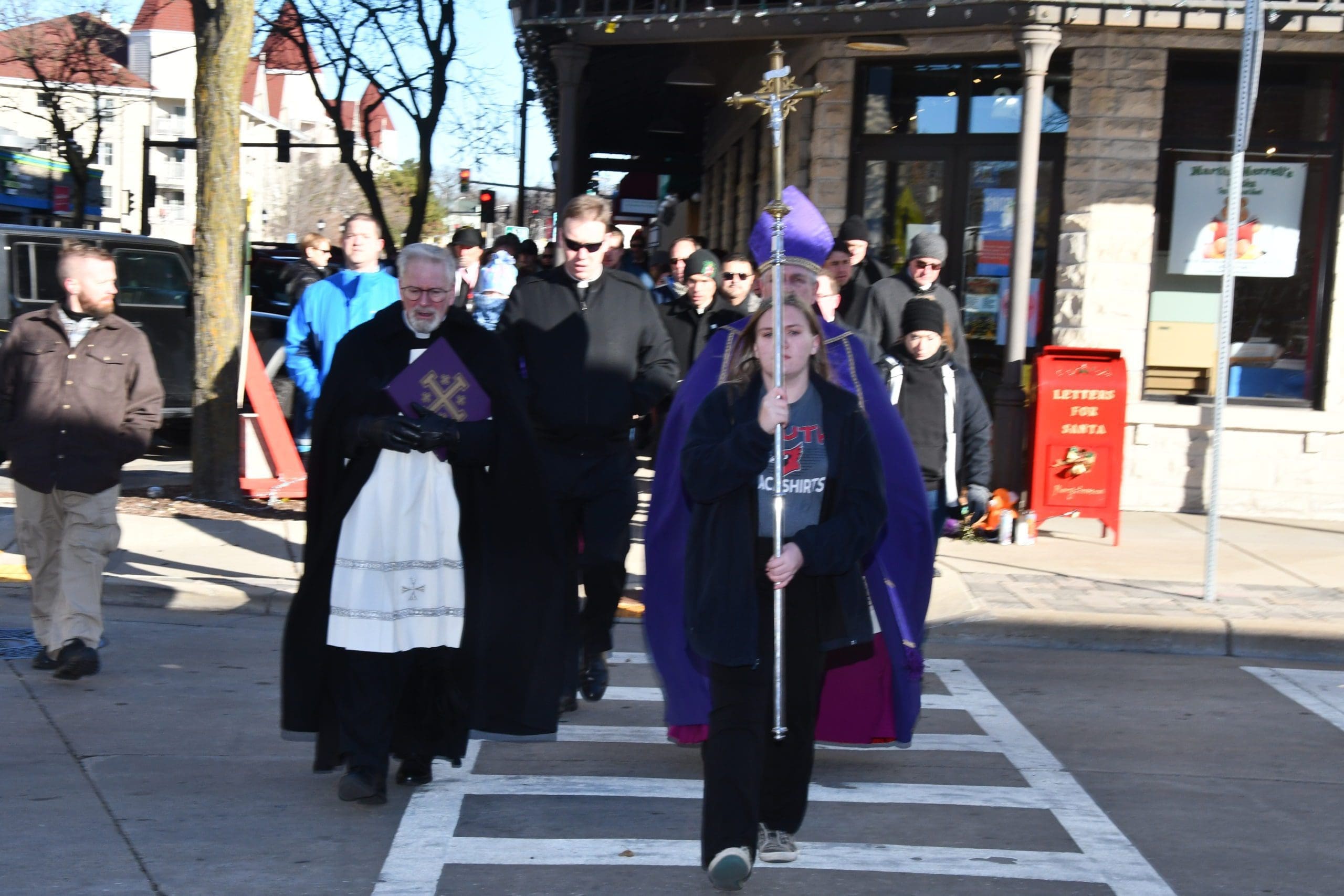 On Sunday, Nov. 28, Archbishop Jerome E. Listecki led a prayer procession to provide spiritual support and assist the Waukesha community with healing from the recent Christmas parade attack. The procession was from St. Joseph’s Catholic Church along the parade route, where Archbishop Listecki led the group in prayer for those who were killed and injured, and in prayers of blessing to purify the area where the evil acts had taken place. (Photos by Tim Townsend)