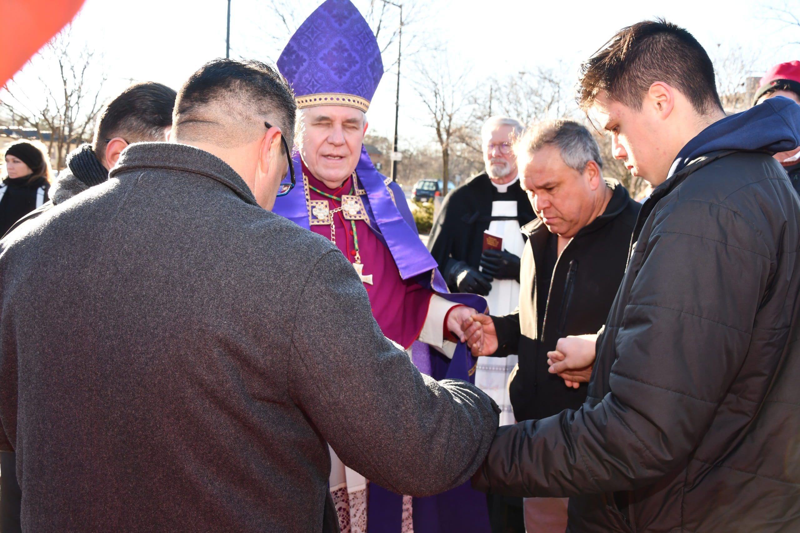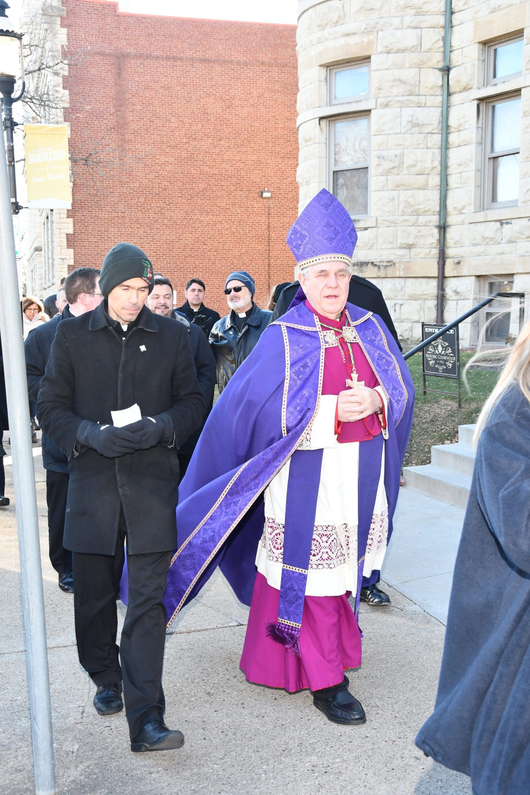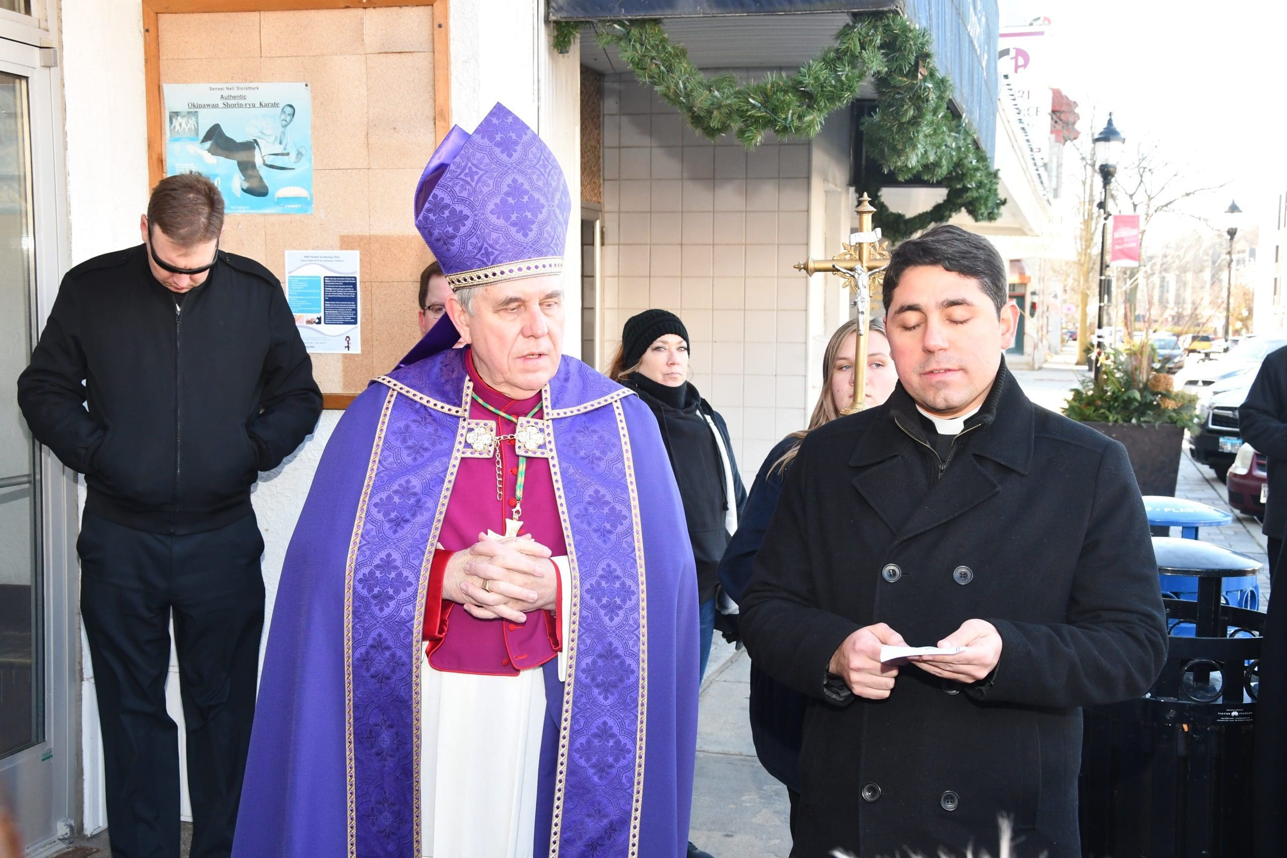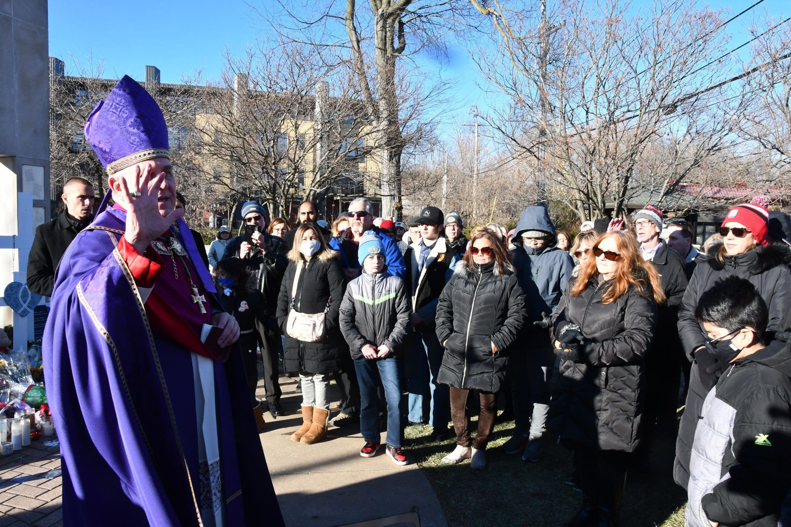 On Sunday, Nov. 28, Archbishop Jerome E. Listecki led a prayer procession to provide spiritual support and assist the Waukesha community with healing from the recent Christmas parade attack. The procession was from St. Joseph’s Catholic Church along the parade route, where Archbishop Listecki led the group in prayer for those who were killed and injured, and in prayers of blessing to purify the area where the evil acts had taken place. (Photos by Tim Townsend)