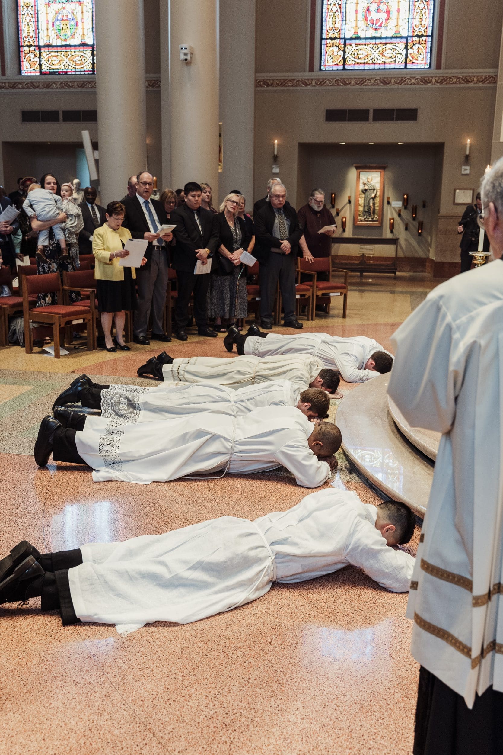 “Showing themselves to be servants of all as minister of the altar, they will proclaim the Gospel, prepare the sacrifice and distribute the Body and Blood of the Lord to the faithful,” Bishop Schuerman said. “It will be also their duty to exhort believers and unbelievers alike and instruct them in the holy doctrines, to preside over public prayer, administer baptisms, assist and bless marriages, bring Viaticum to the dying and conduct funeral rites.