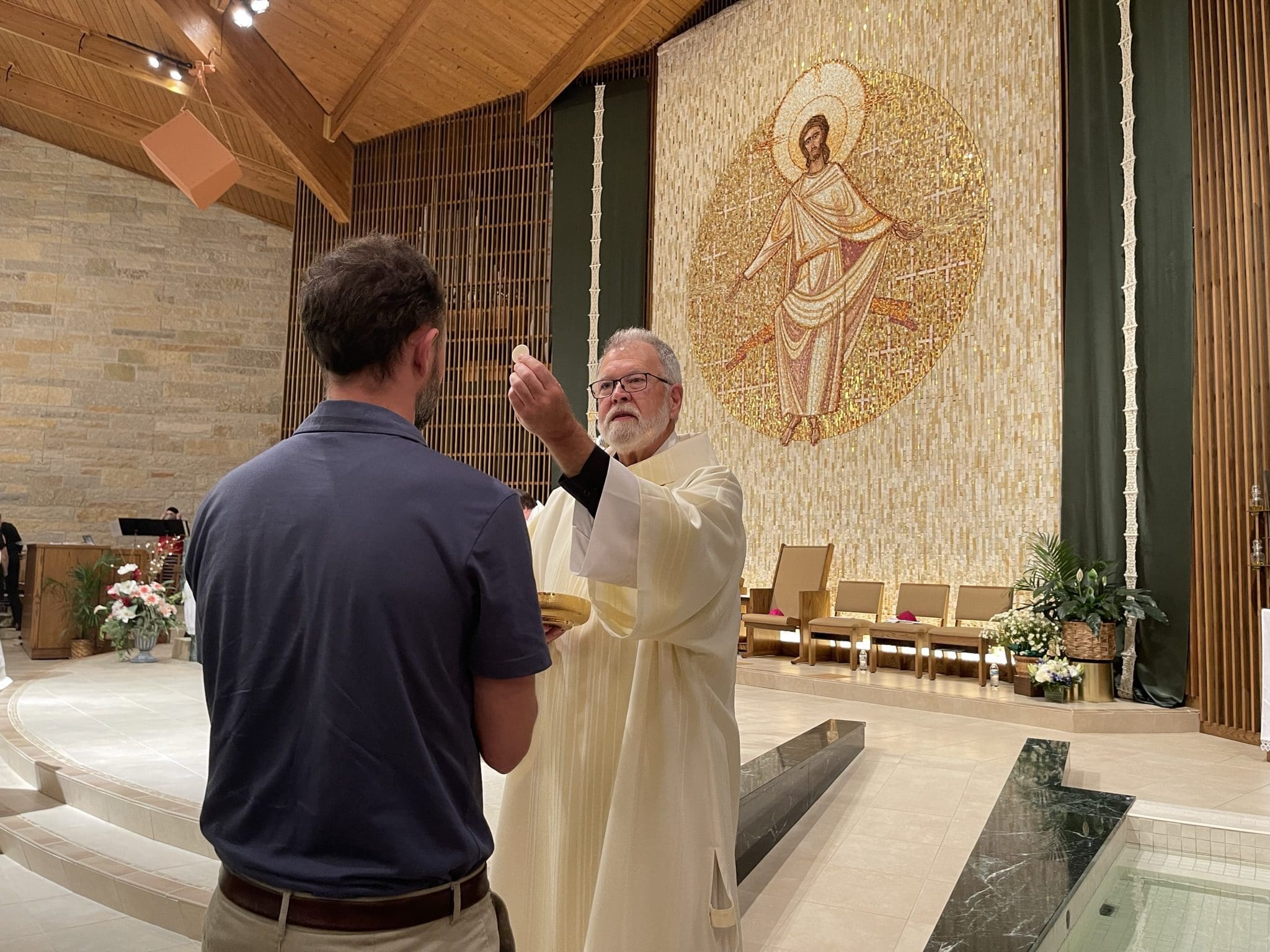 Dcn. Kurt Peot distributes communion during the June 30 Mass. (Photos by Larry Hanson)