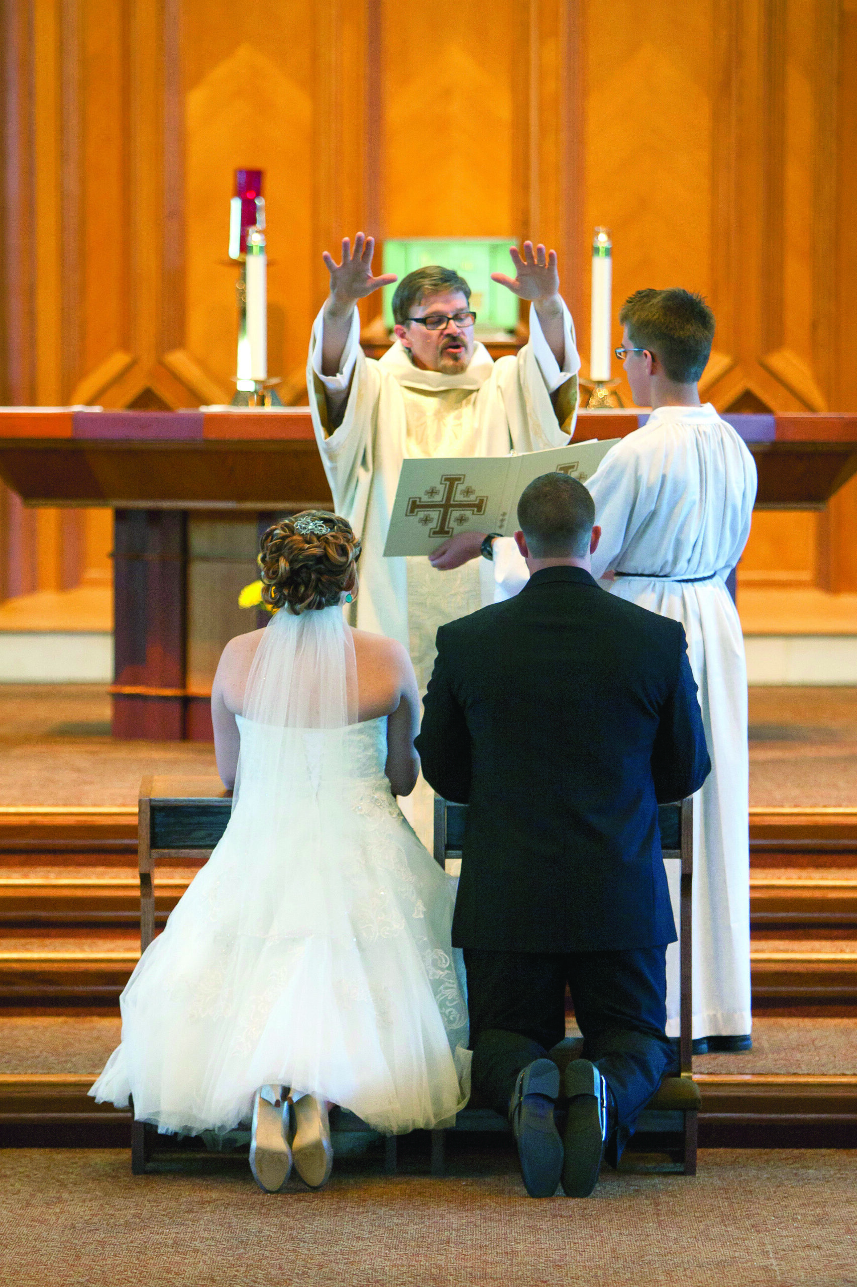 The Sacrament of Matrimony usually, but not always, occurs during a Mass. Spouses are the ministers of the sacrament, mutually conferring it upon each other. Before expressing consent, the couple must answer three questions: that they are freely and wholeheartedly entering the marriage; that they intend to love and honor one another for their entire lives; and that they will accept children lovingly from God and bring them up according to the law of Christ and his Church.