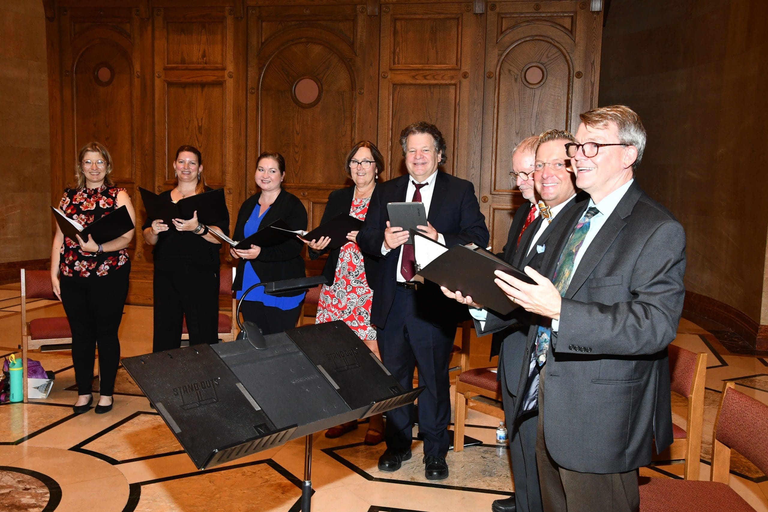 The recipients of the Archbishop’s Vatican II Awards gather on the evening of the prayer service award ceremony, Sept. 30. (Photo by Tim Townsend)