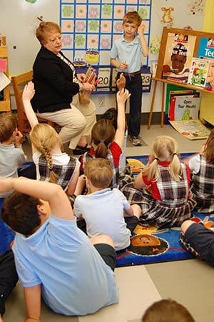 Lynne Kern, a teacher at Holy Family School, Whitefish Bay, for the past 33 years, discusses the calendar with her kindergarten students on May 14. Kern was recently recognized with the Herb Kohl Educational Foundation Fellowship Award. (Catholic Herald photo by Ricardo Torres)Established in 1990 by retired U.S. Senator Herb Kohl, the award recognizes around 100 teachers every year from public and religious schools.