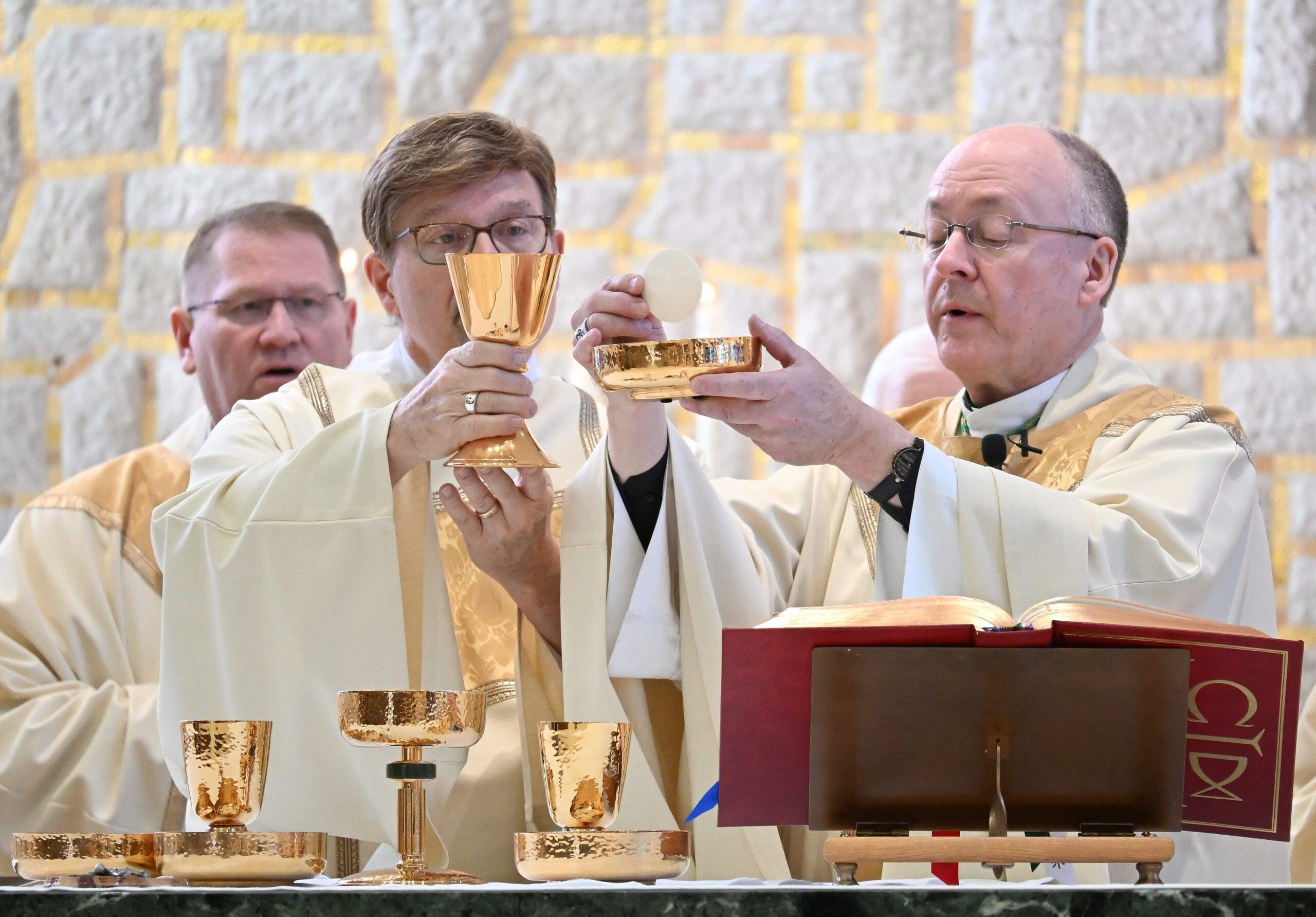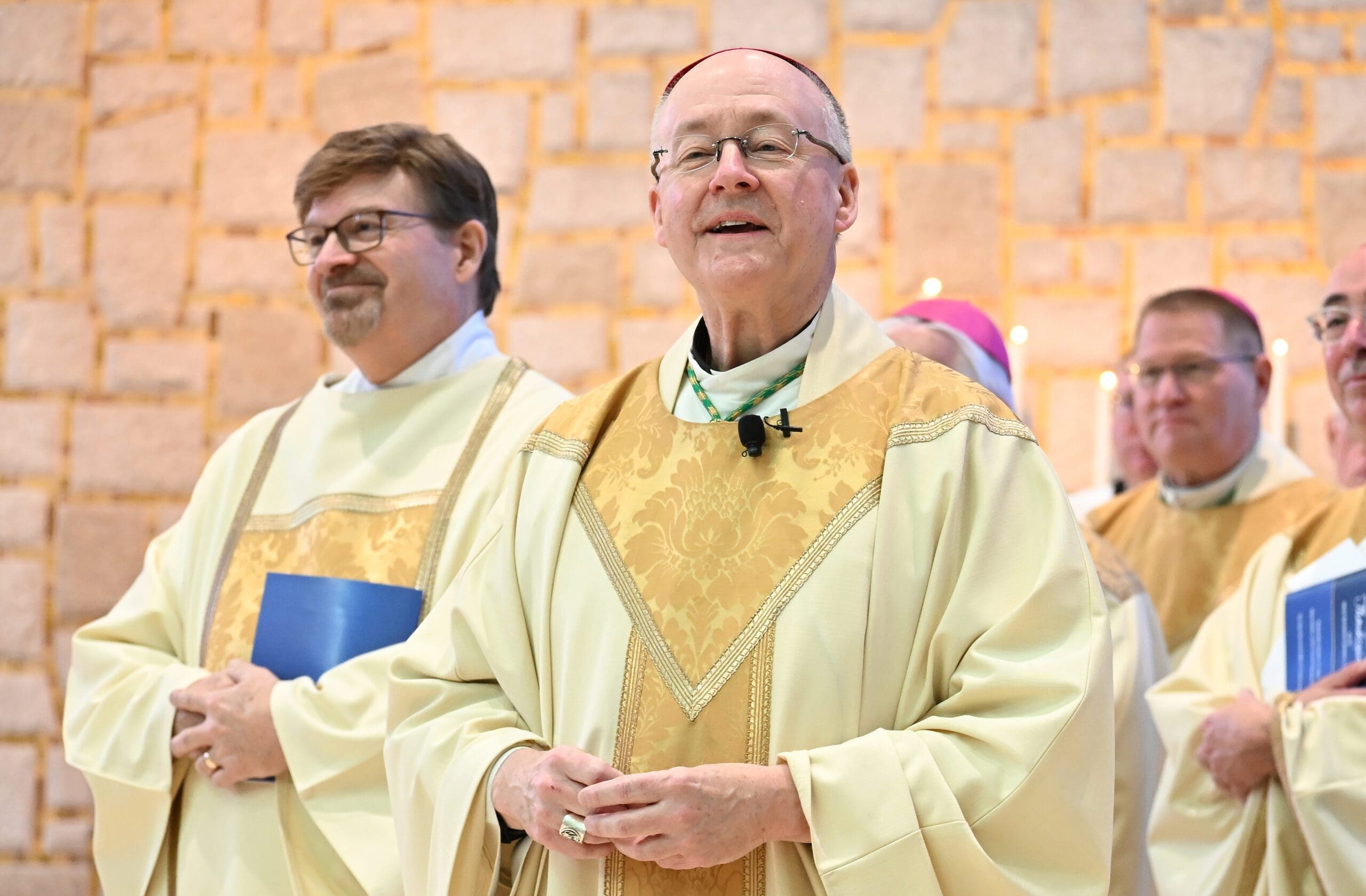 It was fitting, considering the role Mary played in Jesus’ first public miracle, that Archbishop Grob’s mother, Bonnie, was sitting in the front row near the center aisle at the Mass, which was held at Mater Christi Chapel at Mary Mother of the Church Pastoral Center in St. Francis.