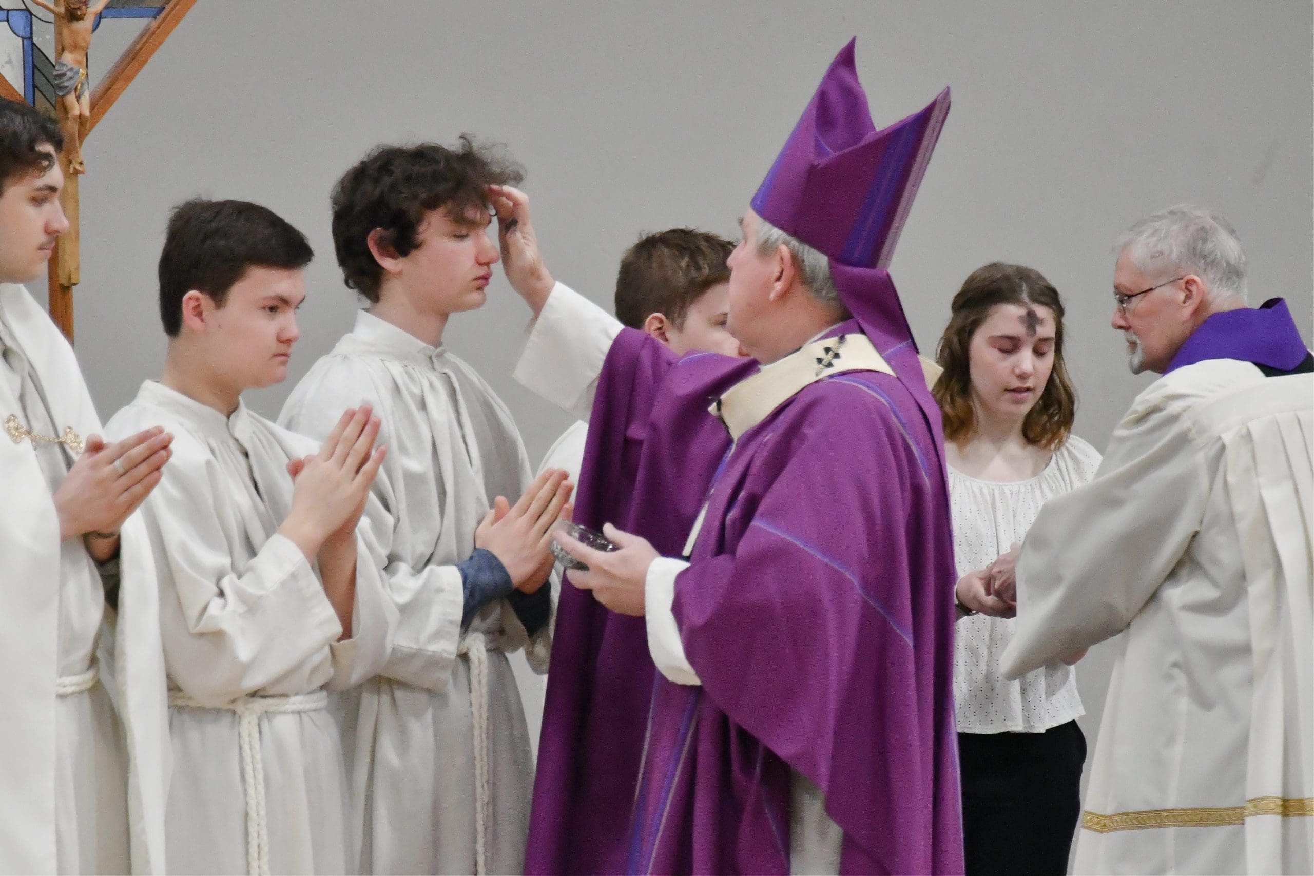 Archbishop Jerome E. Listecki celebrated his annual Ash Wednesday Mass at Pius XI High School on Wednesday, Feb. 22. (Photos by David Bernacchi)