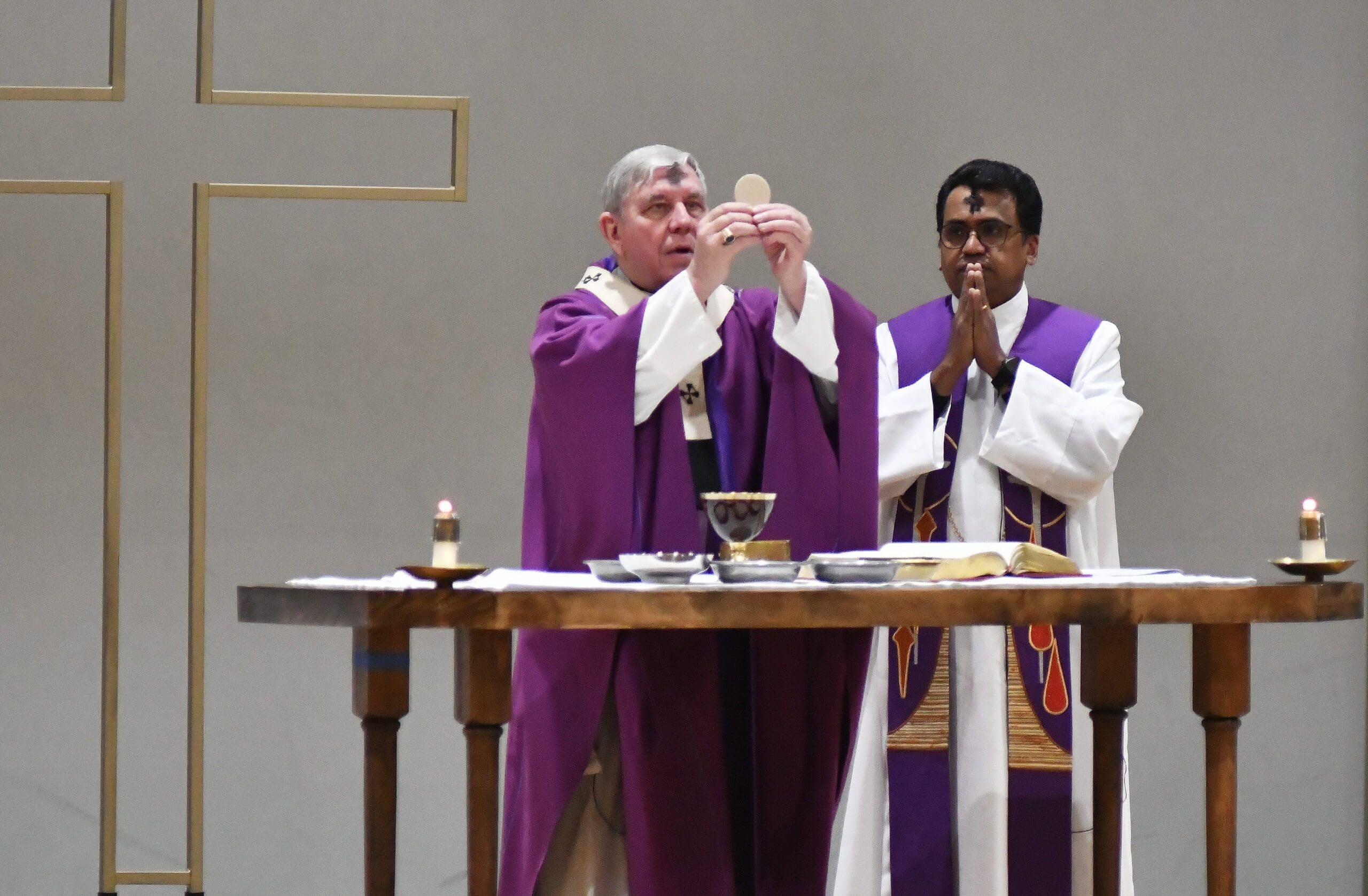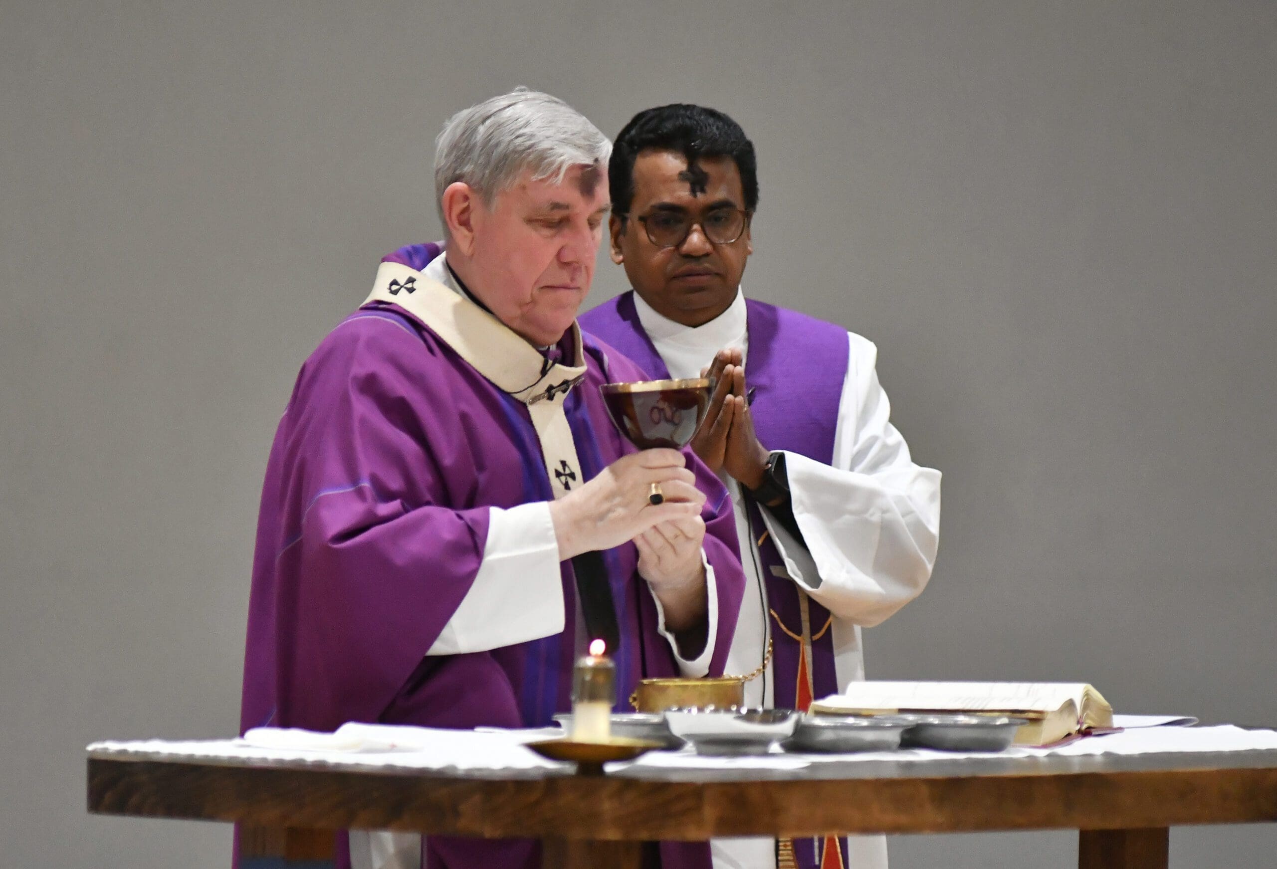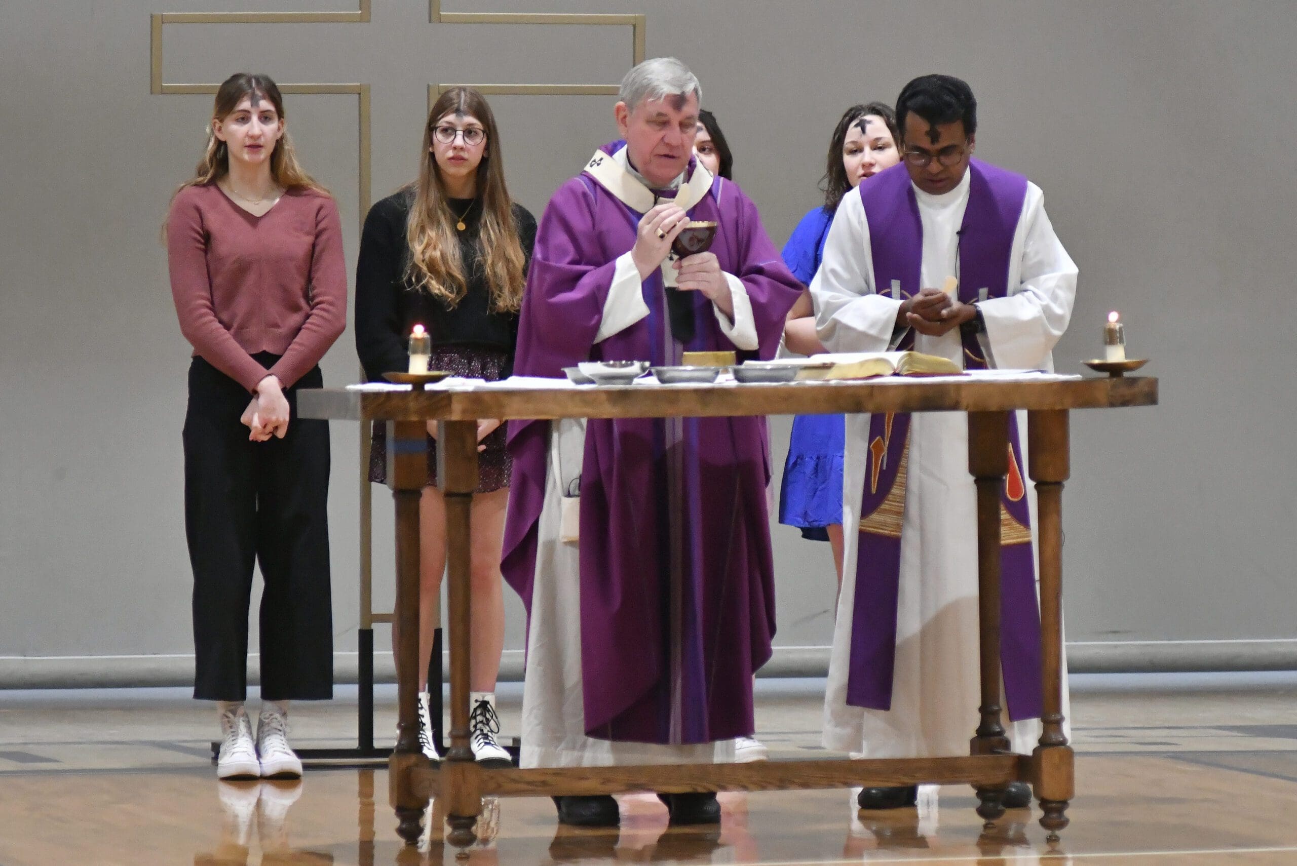 Archbishop Jerome E. Listecki celebrated his traditional Ash Wednesday Mass at Pius XI High School on Feb. 14. (Photos by David Bernacchi)
