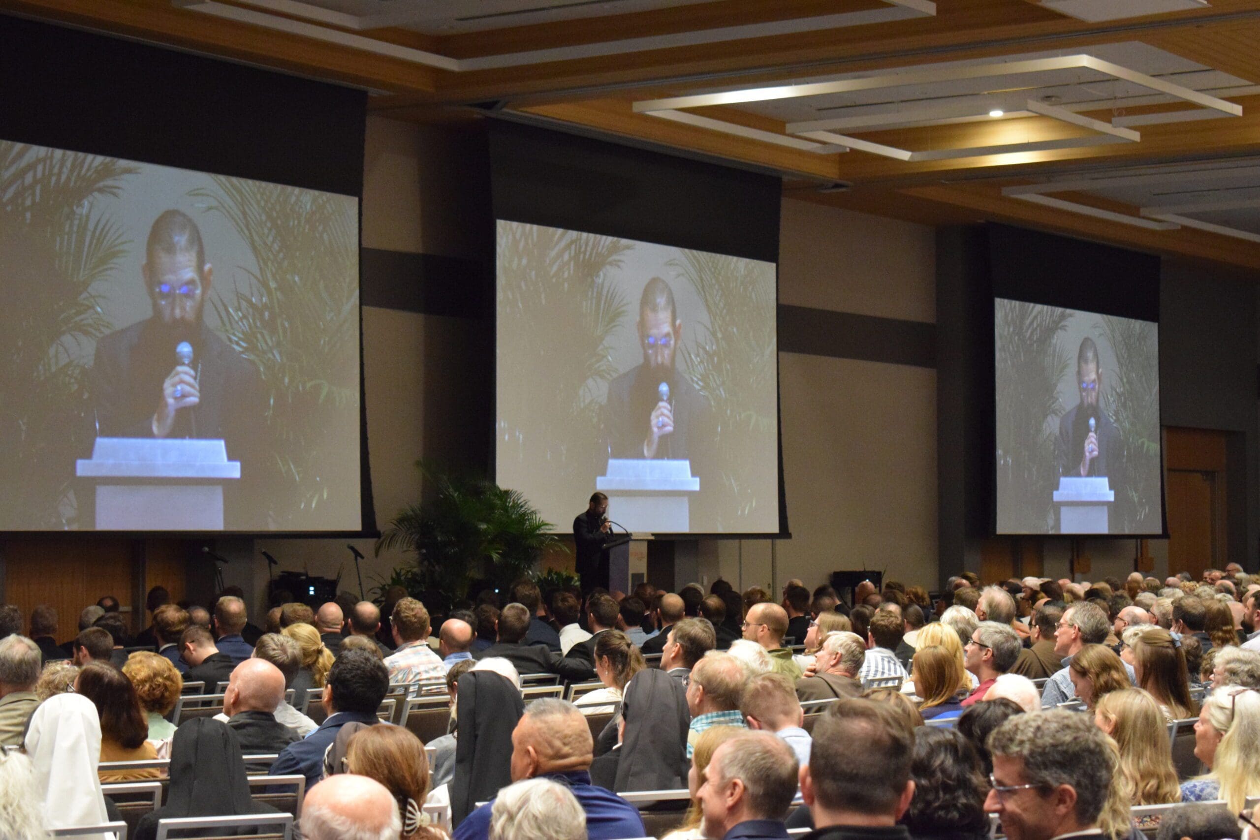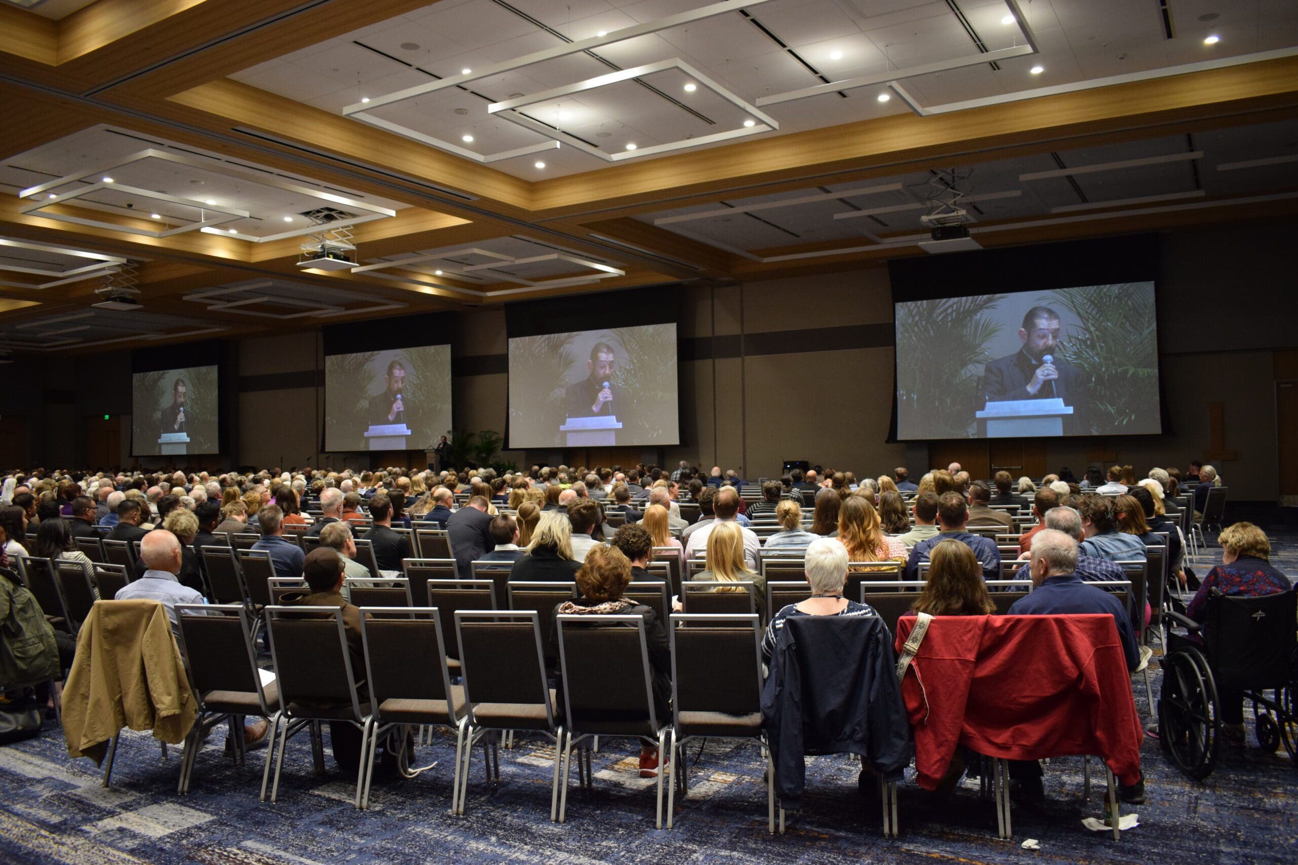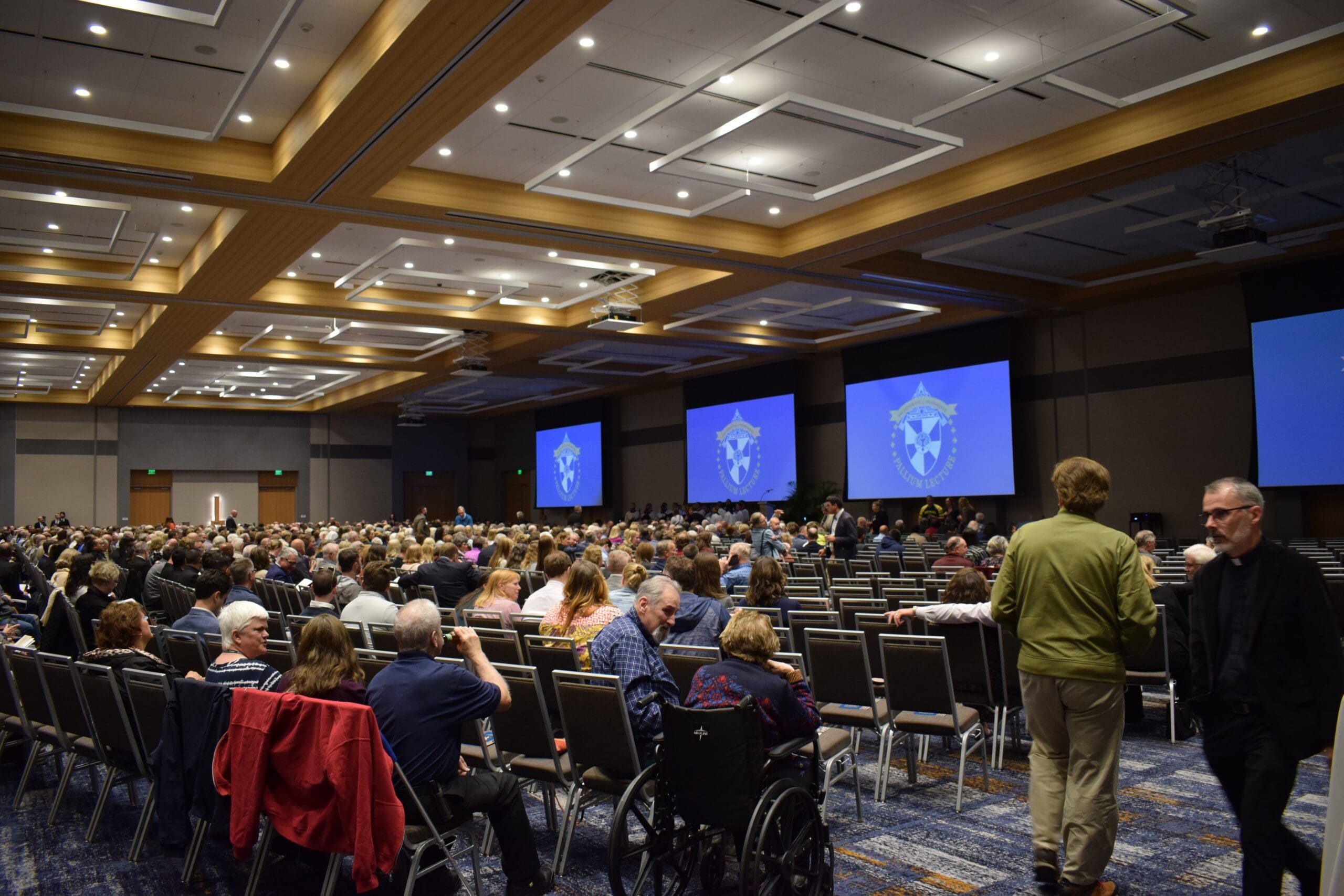The annual Pallium Lecture held Sept. 4 drew nearly 1,200 people to hear Bishop Daniel E. Flores of the Diocese of Brownsville, Texas, speak on the Council of Nicaea. (Photo by John Bruns)