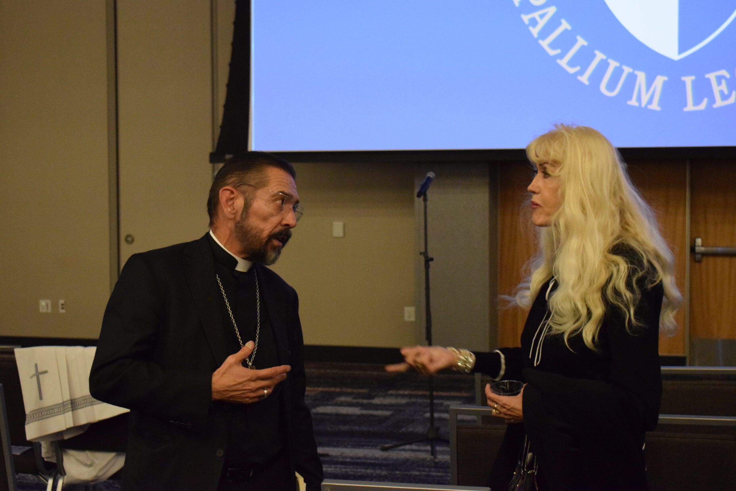 Before Bishop Flores’ remarks, Lydia LoCoco, past director of the Archdiocese of Milwaukee’s Office of Evangelization and Catechesis, took to the conference center stage to educate the audience on what, exactly, a pallium is.