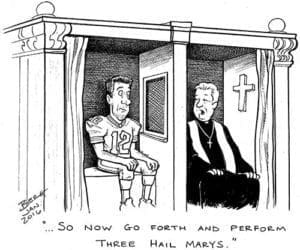 His cartoon published above displays a couple items near and dear to Wisconsinites –faith and the Green Bay Packers.