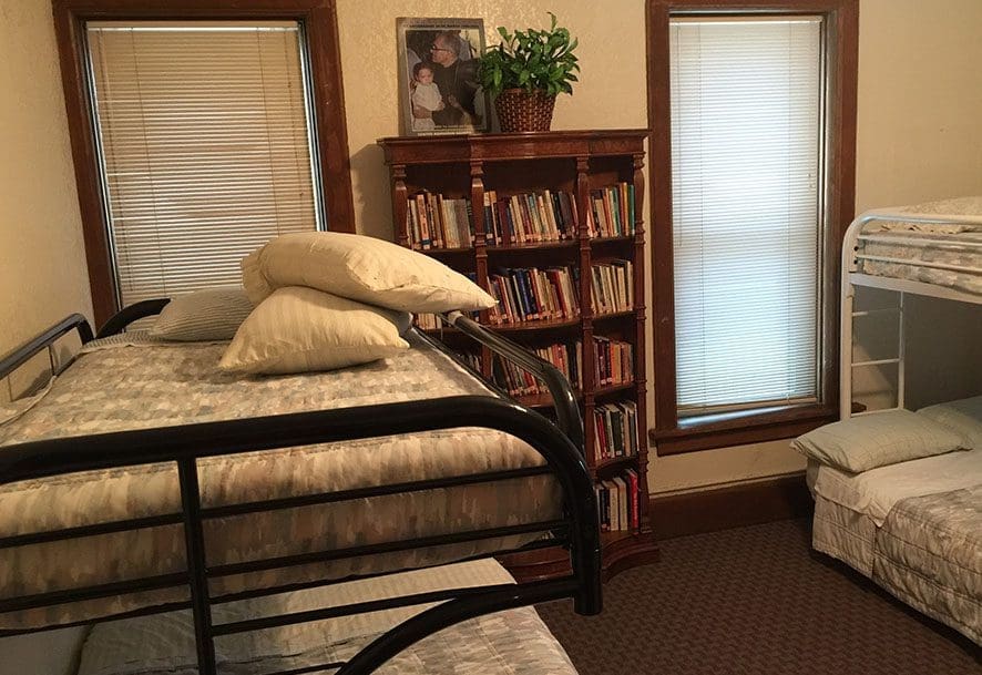 However, the building can sleep 14 people in beds. Fr. Shields said it has held as many as 30 people during college groups with people sleeping on the floor.