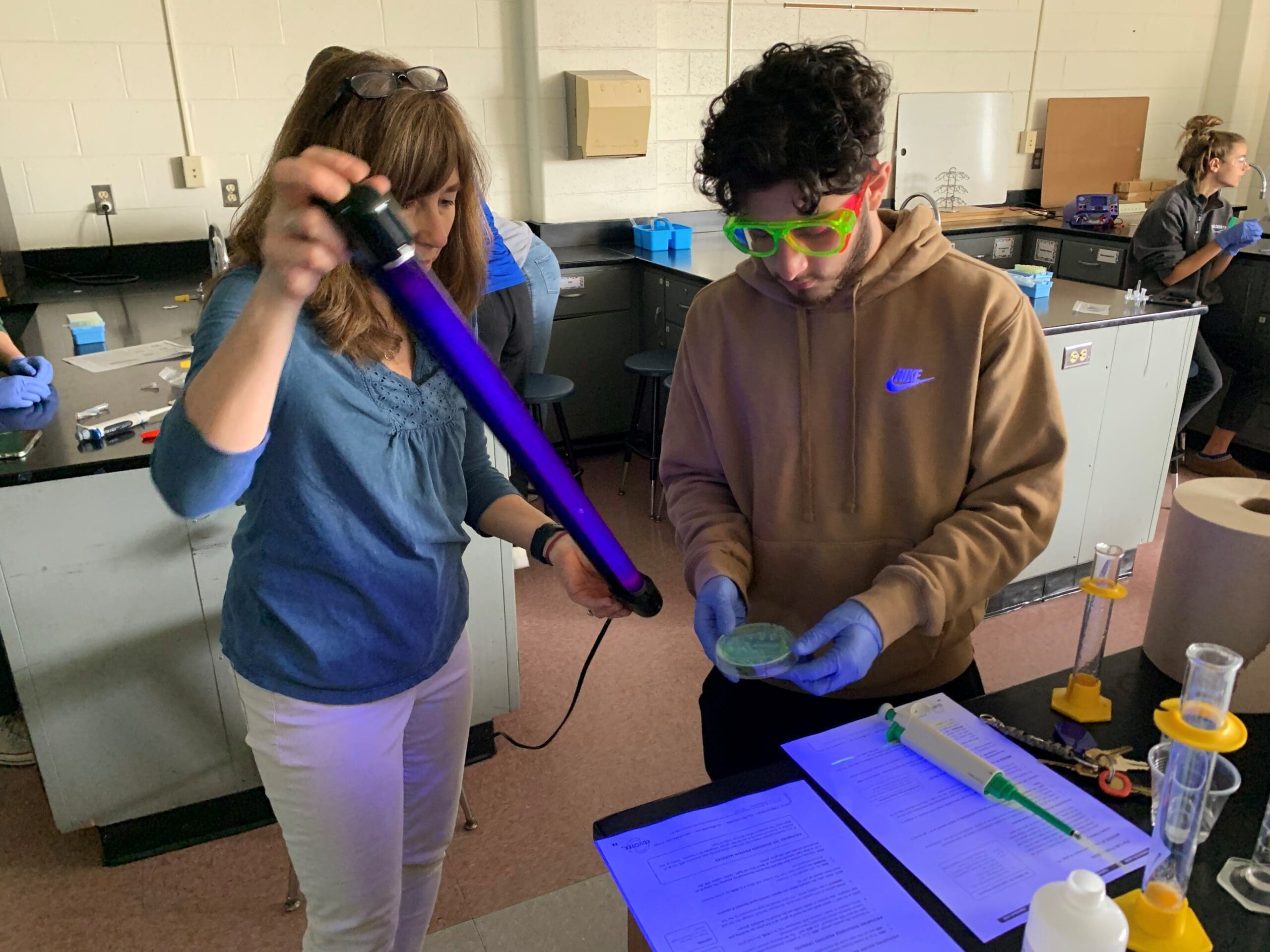 Catholic Memorial High School Science Teacher Sandy Rice guides students through a lab to mimic insulin production. (Submitted photo)