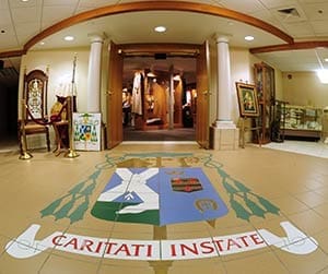 The Green Bay Diocese Museum and Cultural Center, in the lower level of the Bishop Wycislo Center, next to St. Francis Xavier Cathedral, is home to some 700 religious objects dating to the 19th century. The items range from liturgical vestments and sacred vessels to furnishings that adorned St. Mary Church, the diocese’s pro-cathedral until the present cathedral was dedicated in 1881. Glass cabinets house gold plated chalices decorated with precious stones and bishops’ episcopal rings and pectoral crosses. Historical books, prayer cards, letters, saints’ relics and sacramentals are also on display.