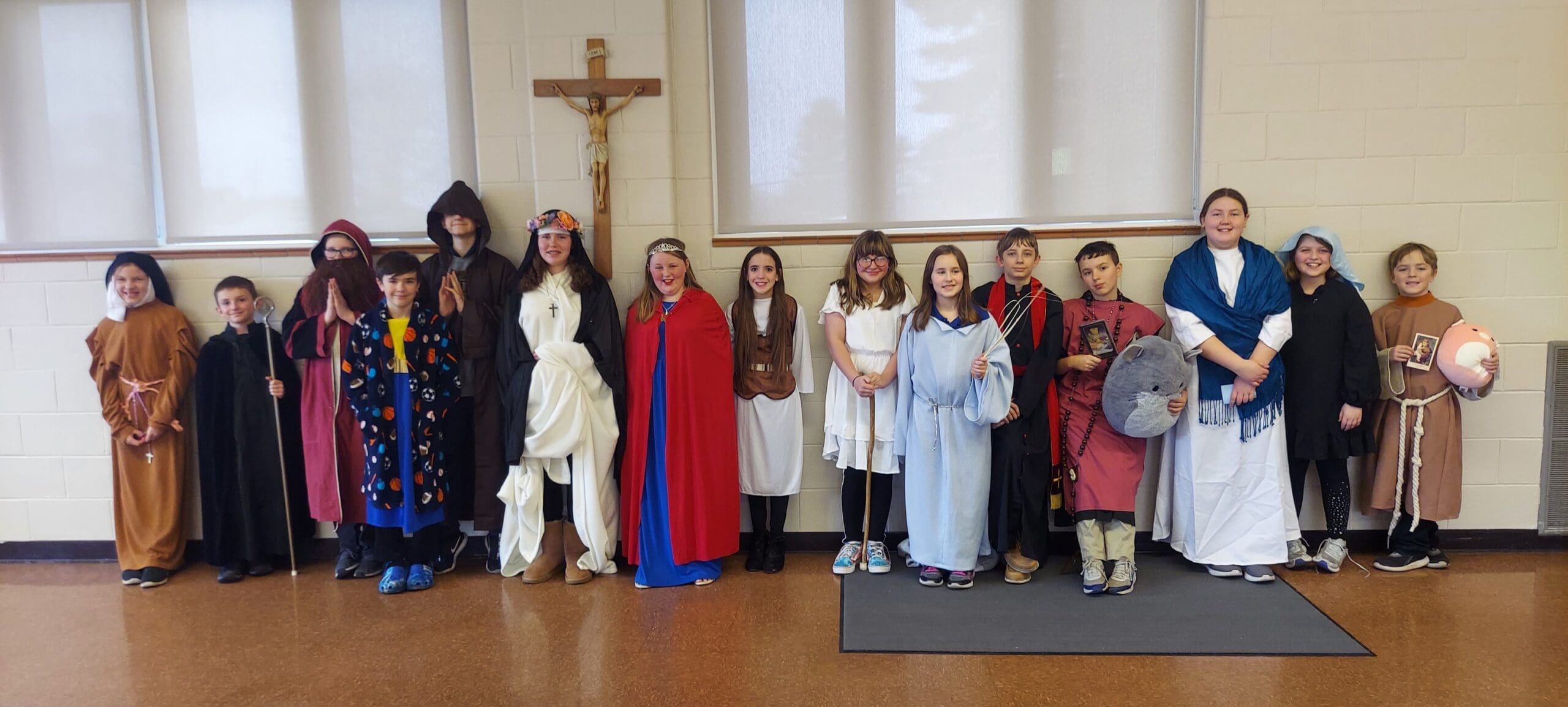 Students in third through seventh grade at Holyland Catholic School, Malone, had a living saints museum on Friday, Feb. 2, to cap off Catholic Schools Week. (Submitted photo)