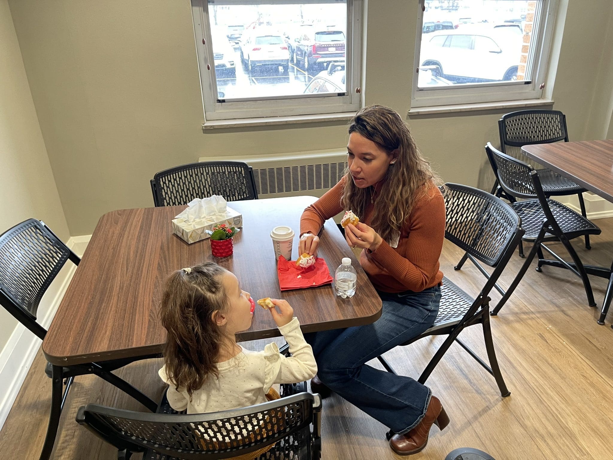 A mother and daughter take time out during the Open House at St. Monica, Whitefish Bay, for a snack on Sunday, Jan. 28. (Photo by Larry Hanson)