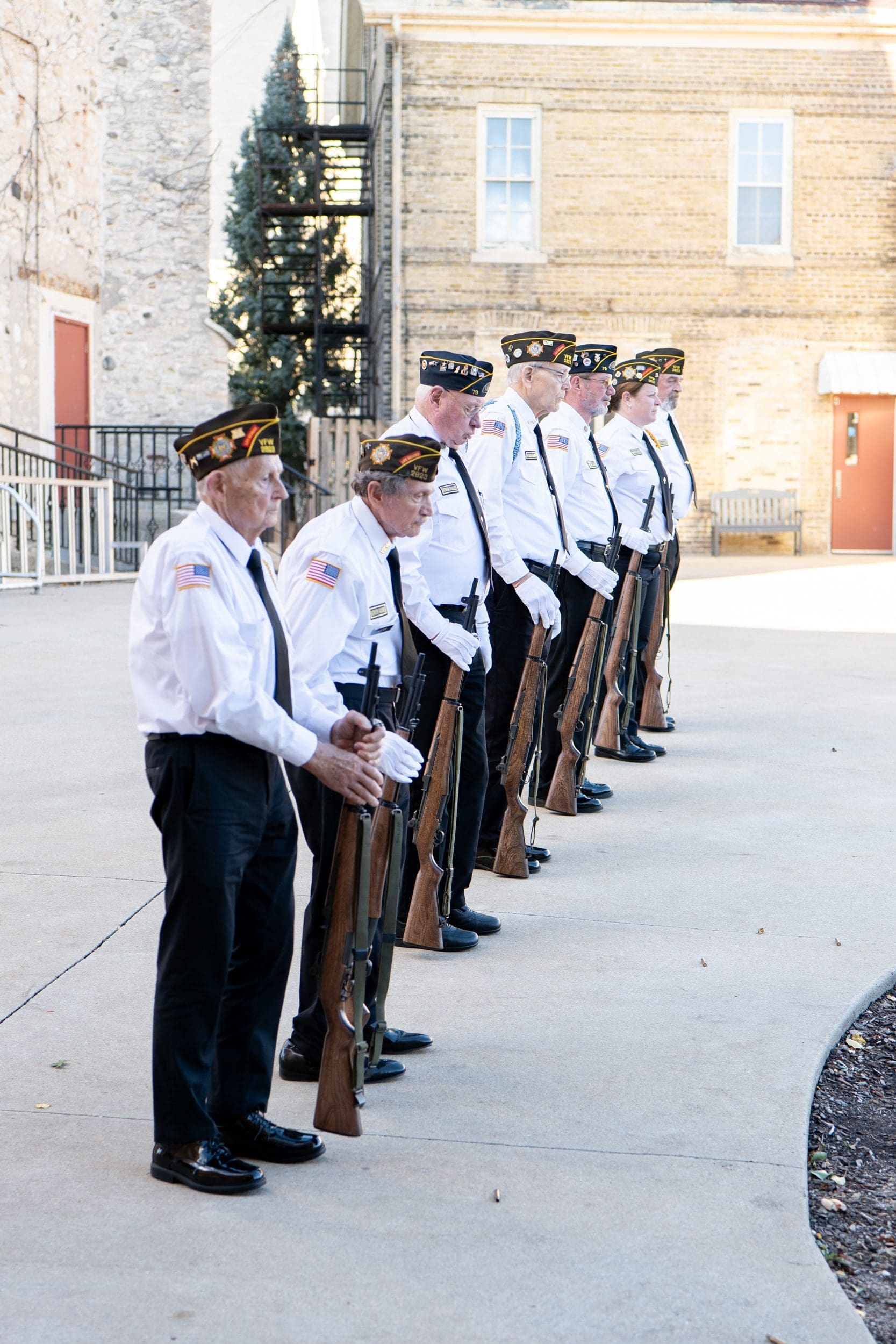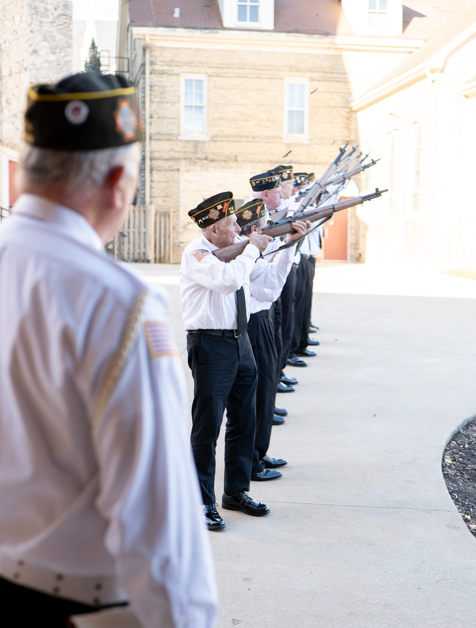 The celebration included patriotic music, members of Boy Scout Troop 334, and a military honors ceremony with the American Legion post 79, VFW post 2823, DAV and the Marine Corps League from the Burlington area, complete with a 21-gun salute. Shimon followed the ceremony by playing Taps.