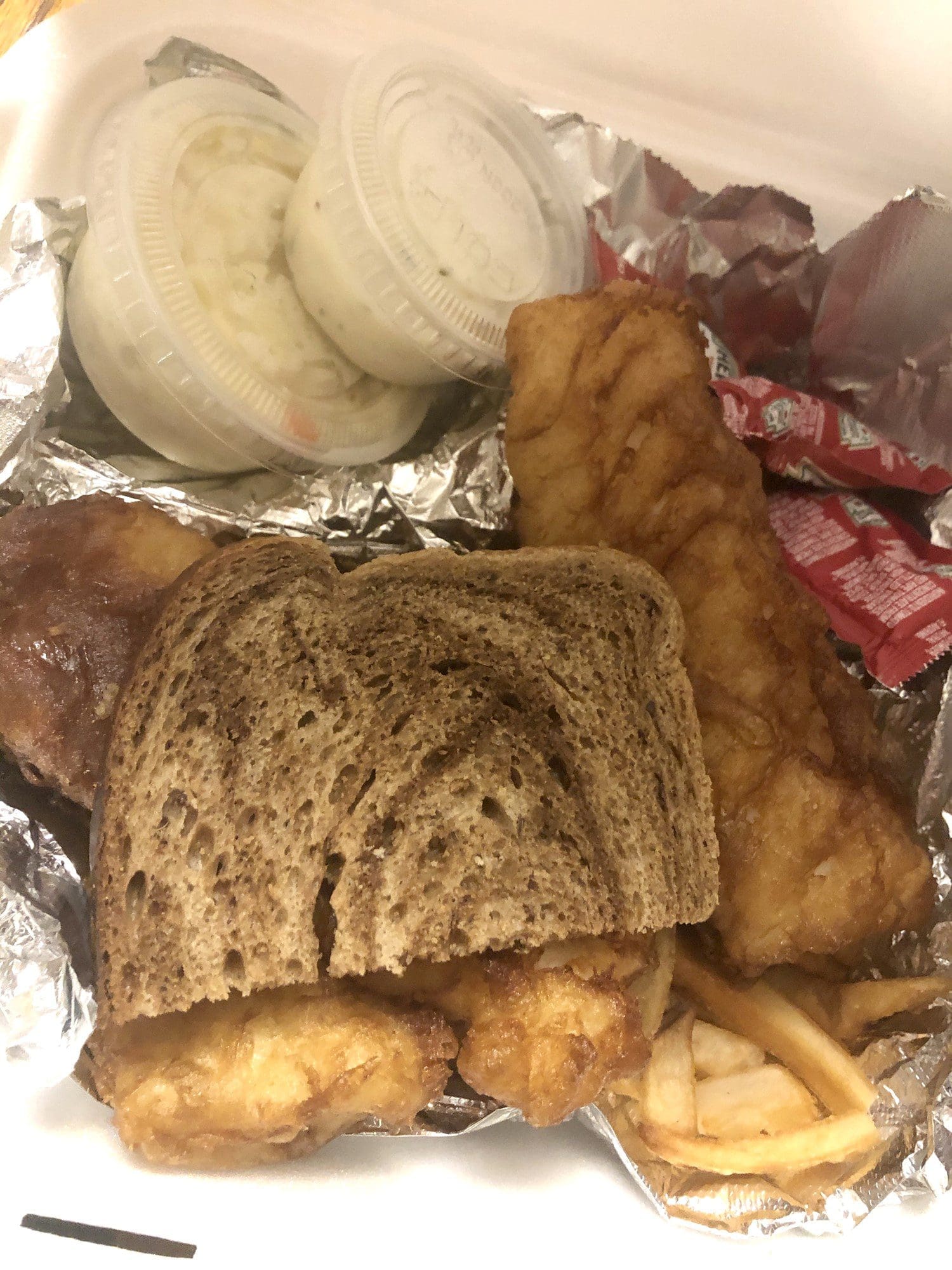 But, in the meantime, I’m OK sitting in my car and having fried fish delivered straight to my hands, to take home and eat in the comfort of my own living room.