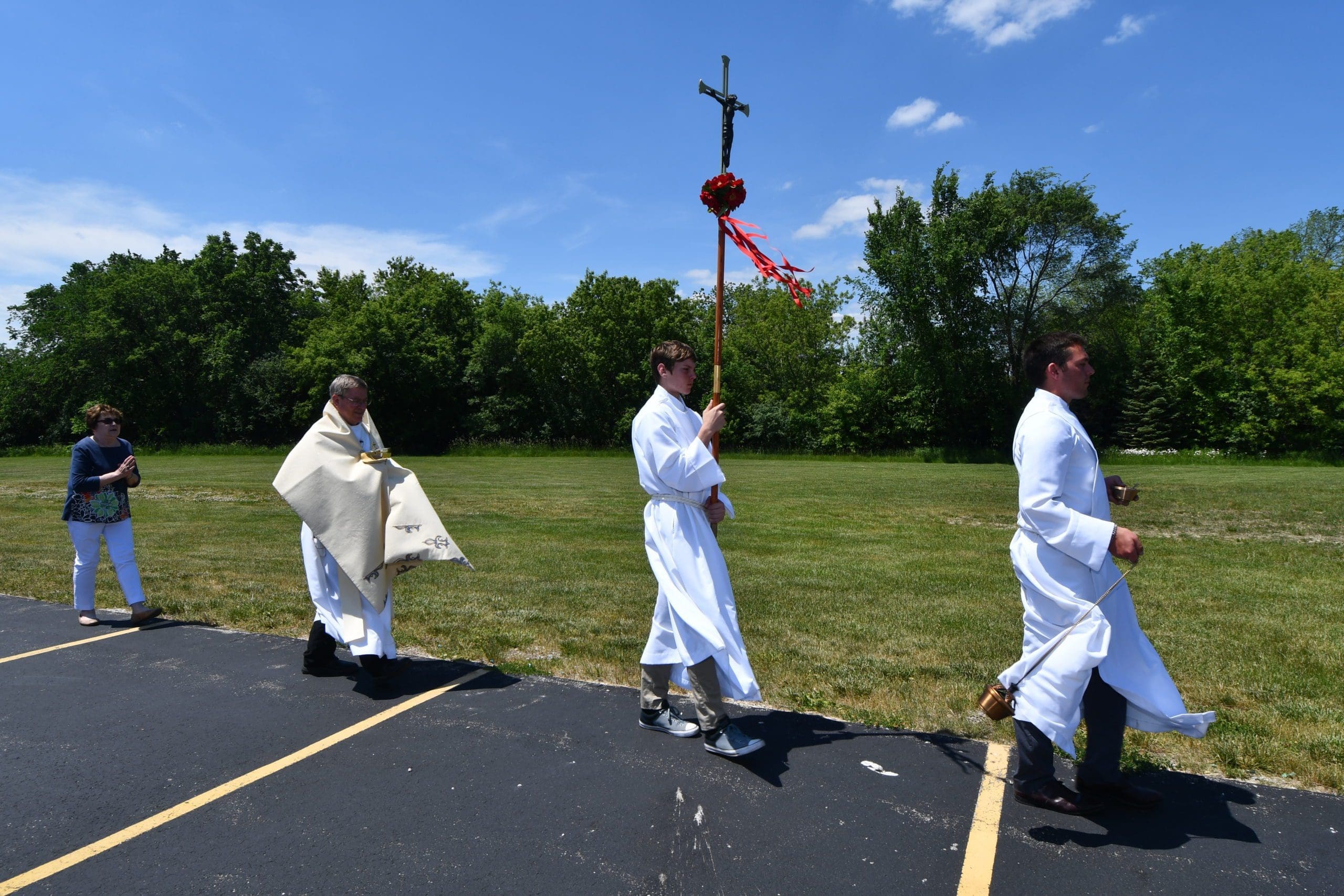 St. John the Evangelist Parish in Greenfield held a Corpus Christi processional following Mass on Sunday, June 6. (Photos by Tim Townsend)