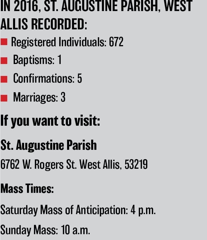 “At that time, cars were first coming into existence,” Panhans fondly recalls. “West Allis people belonged to Sacred Heart in Milwaukee at Seventh and Galena Street. I was baptized at Sacred Heart by the priest who started this church. This church was part of my life before because both churches (Sacred Heart and St. Augustine) had social events together. A lot of my friends belonged to the church so it wasn’t like I was coming to a strange place. When I got married, this is where I belonged because that’s the way I was brought up.”