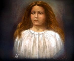A portrait of St. Maria Goretti, painted by artist Giuseppe Brovelli-Soffrendini is the only image of the 11-year-old saint, as there were no photographs of her ever taken. The artist created the portrait based on her mother’s description of her daughter. Maria’s mother said this portrait most resembled her little girl. (Submitted image courtesy mariagoretti.com)The parish is the only site in the Milwaukee Archdiocese to host the major relics of St. Maria Goretti, at age 11, the youngest canonized saint in the Catholic Church.